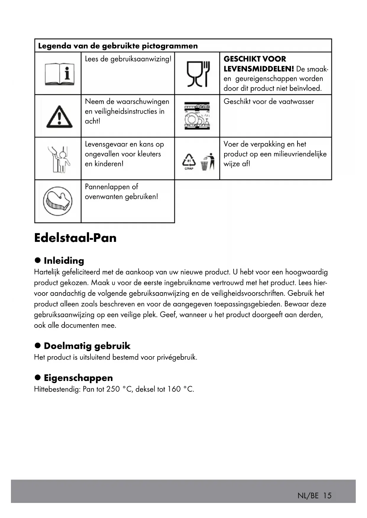 Hittebestendig: Pan tot 250^ , deksel tot 160^ .