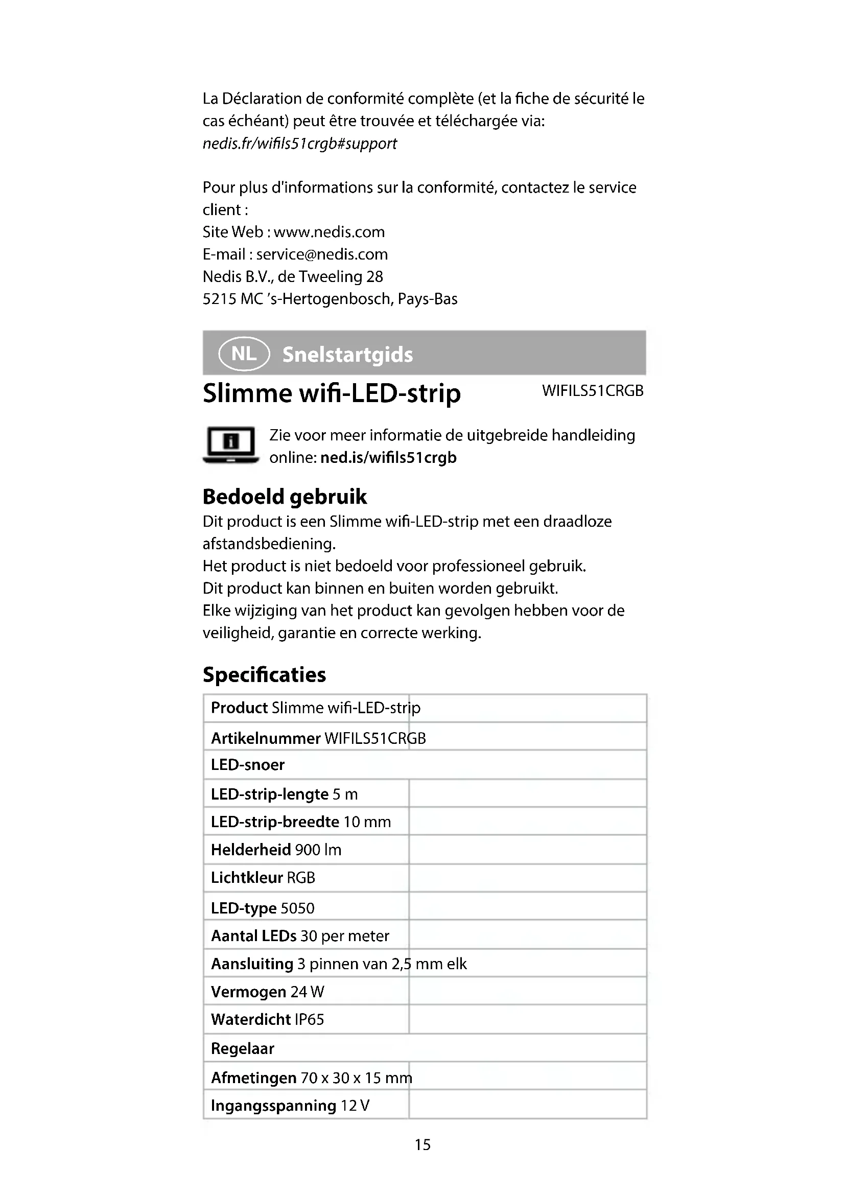 Vind de handleiding van het apparaat gratis WIFILS51CRGB NEDIS in PDF-formaat.