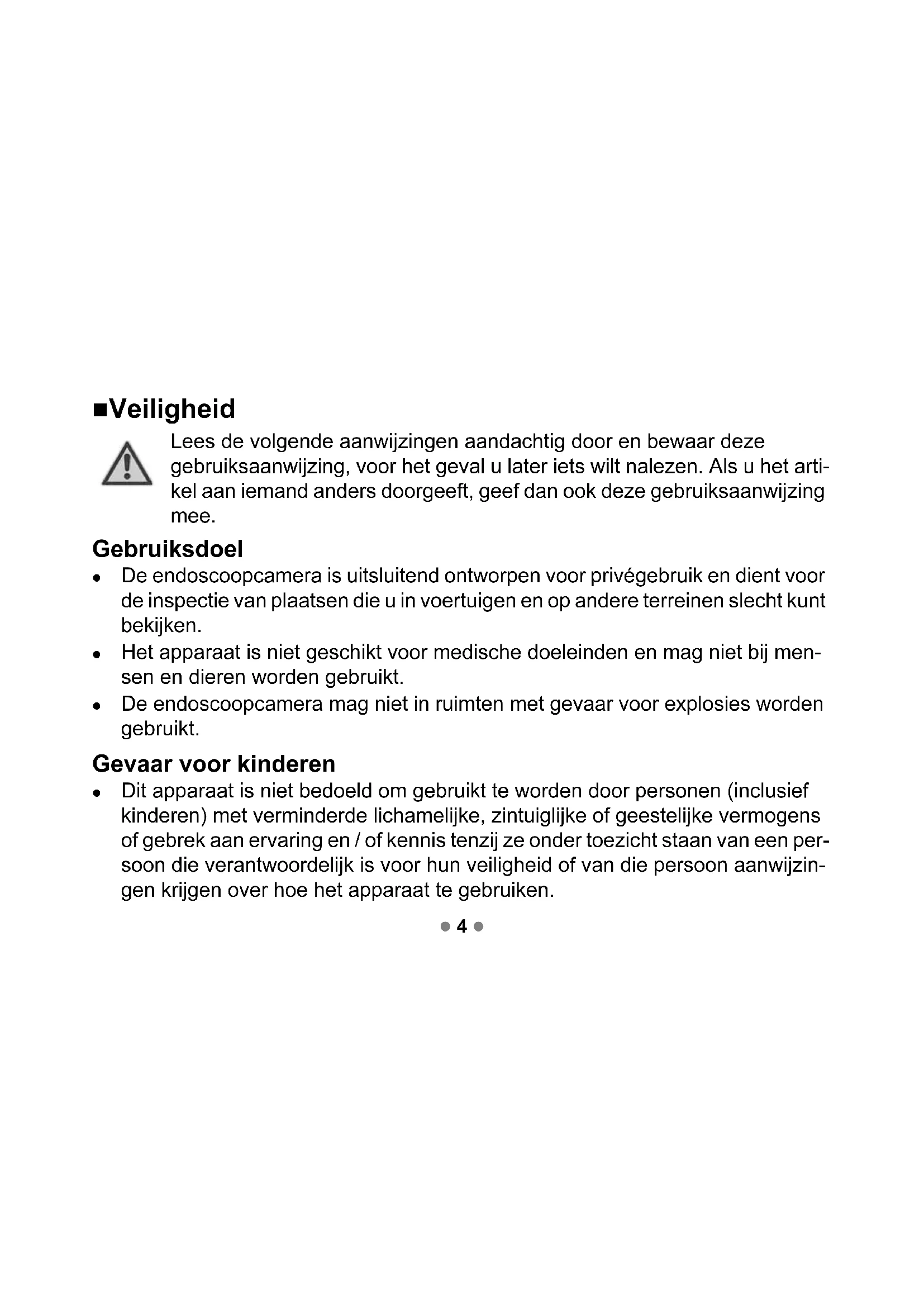 - De endoscoopcamera mag Niet in ruimten met gevaar voor explosions worden gezruikt.