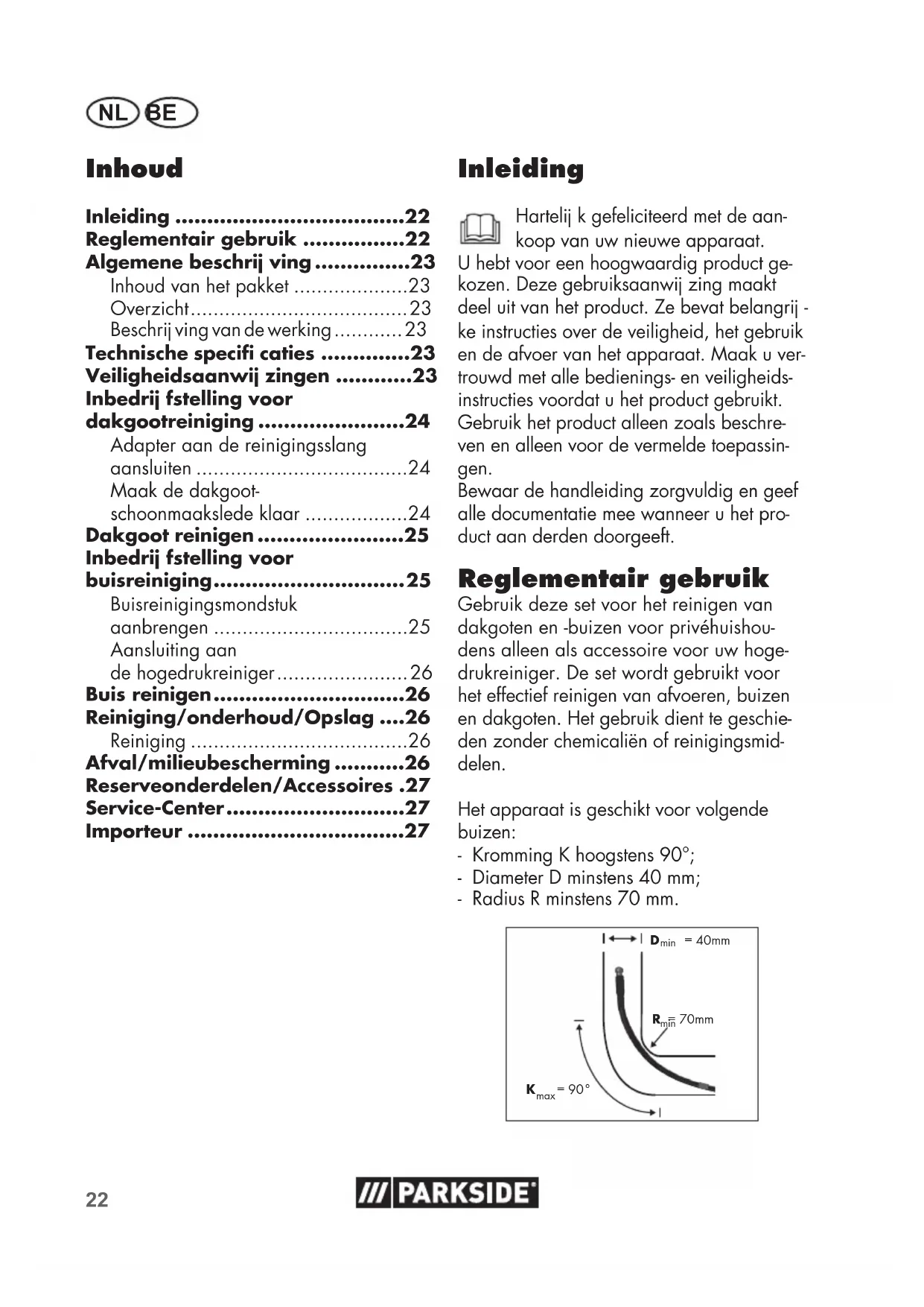 Gebruik deze set voor het reinigen van dakgoten en -buizen voor privéhuishoudens alleen als accessoire voor uw hogedrukreiniger. De set wordt gebruikt voor het effectief reinigen van afvoeren, buizen en dakgoten. Het gebruik dient te geschieden zonder chemicalien of reinigingsmiddelen.