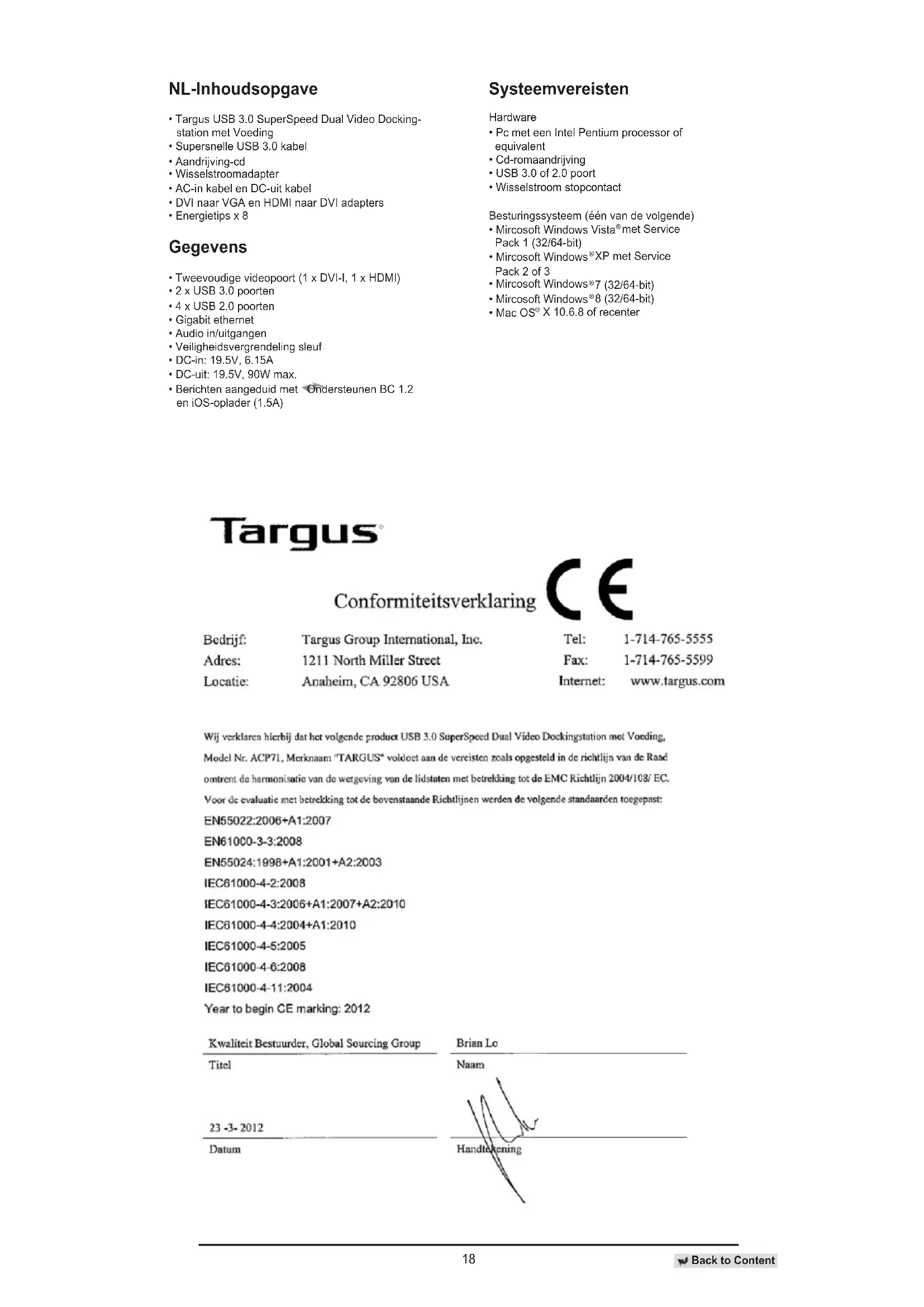 Download de handleiding voor uw Dockstation in PDF-formaat gratis! Vind uw handleiding ACP71EU - TARGUS en neem uw elektronisch apparaat weer in handen. Op deze pagina staan alle documenten die nodig zijn voor het gebruik van uw apparaat. ACP71EU van het merk TARGUS.