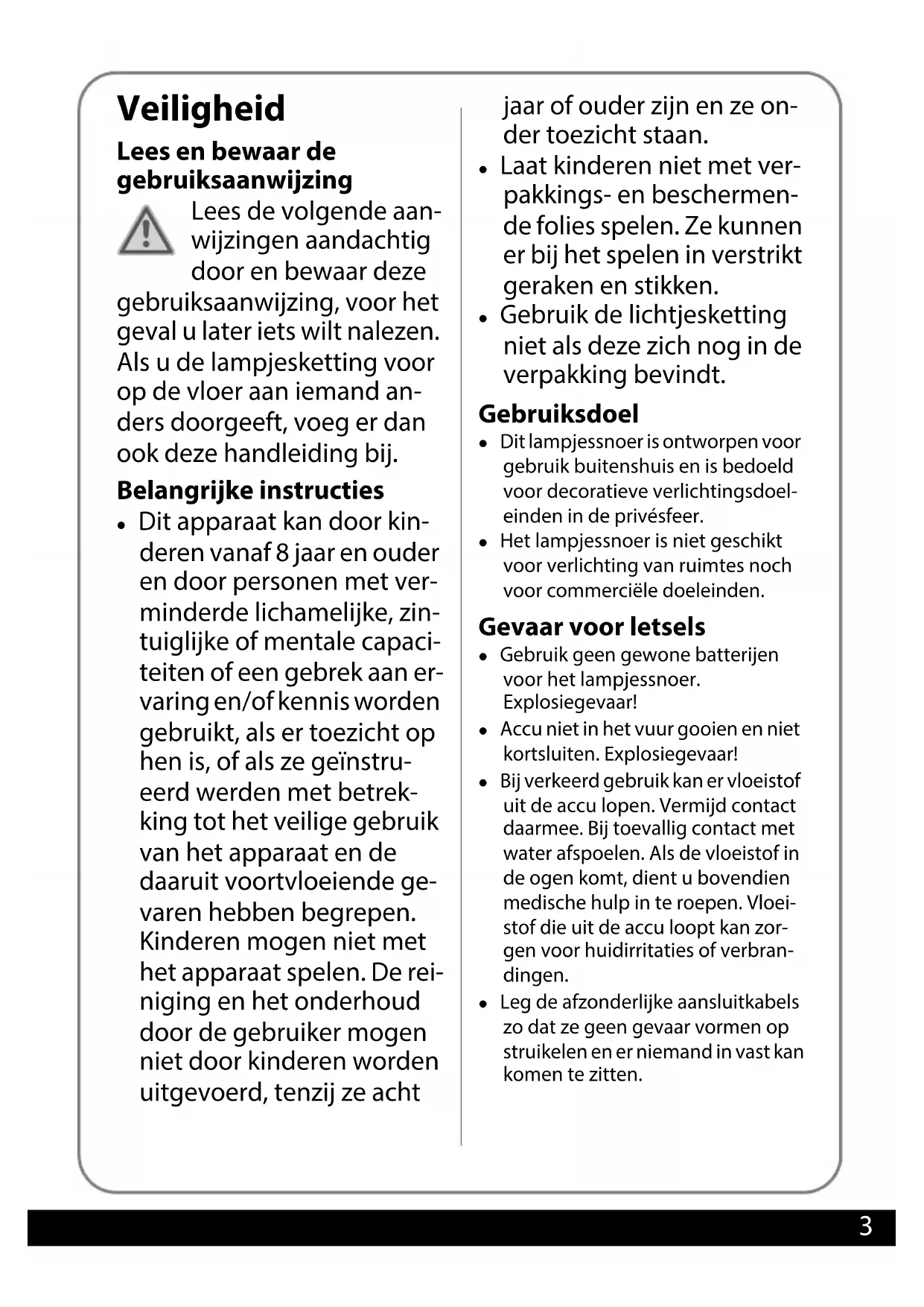 geval is, mag u het lampjessnoer niet gebruiken. Neem contact op met de fabrikant via het op het garantiebewijs aangegeven serviceadres.