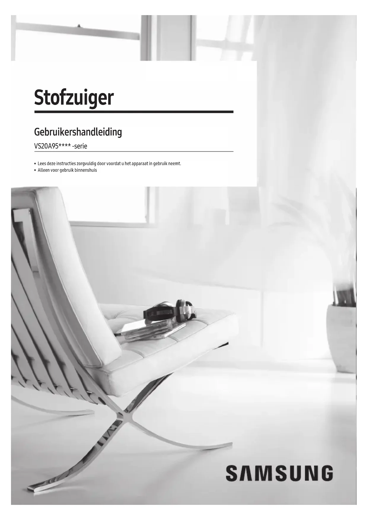 - Aangezien de gebruiksinstructies gelden voor meerdere modellen, kunnen de eigenschappen van uw stofzuiger verschillen van de beschrijving in deze handleiding. Belangrijke veiligheidssymbolen WAARSCHUWING Geeft aan dat er risico op ernstig of dodelijk letsel bestaat. VOORZICHTIG Geeft aan dat er risico op lichamelijk letsel of materiële schade bestaat. OPMERKING Geeft aan dat in de tekst die volgt belangrijke aanvullende informatie staat. VeiligheidsinformatieVeiligheidsinformatie Nederlands4 Veiligheidsinformatie Algemeen Zie voor informatie over de milieuverplichtingen en productspecifieke reglementaire verplichtingen van Samsung, bijvoorbeeld REACH (AEEA, accu's) samsung.com/uk/aboutsamsung/samsungelectronics/ corporatecitizenship/data_corner.html Als u zich niet aan deze voorzorgsmaatregelen houdt, kunnen interne onderdelen van de stofzuiger beschadigd raken, waardoor uw garantie ongeldig wordt.
