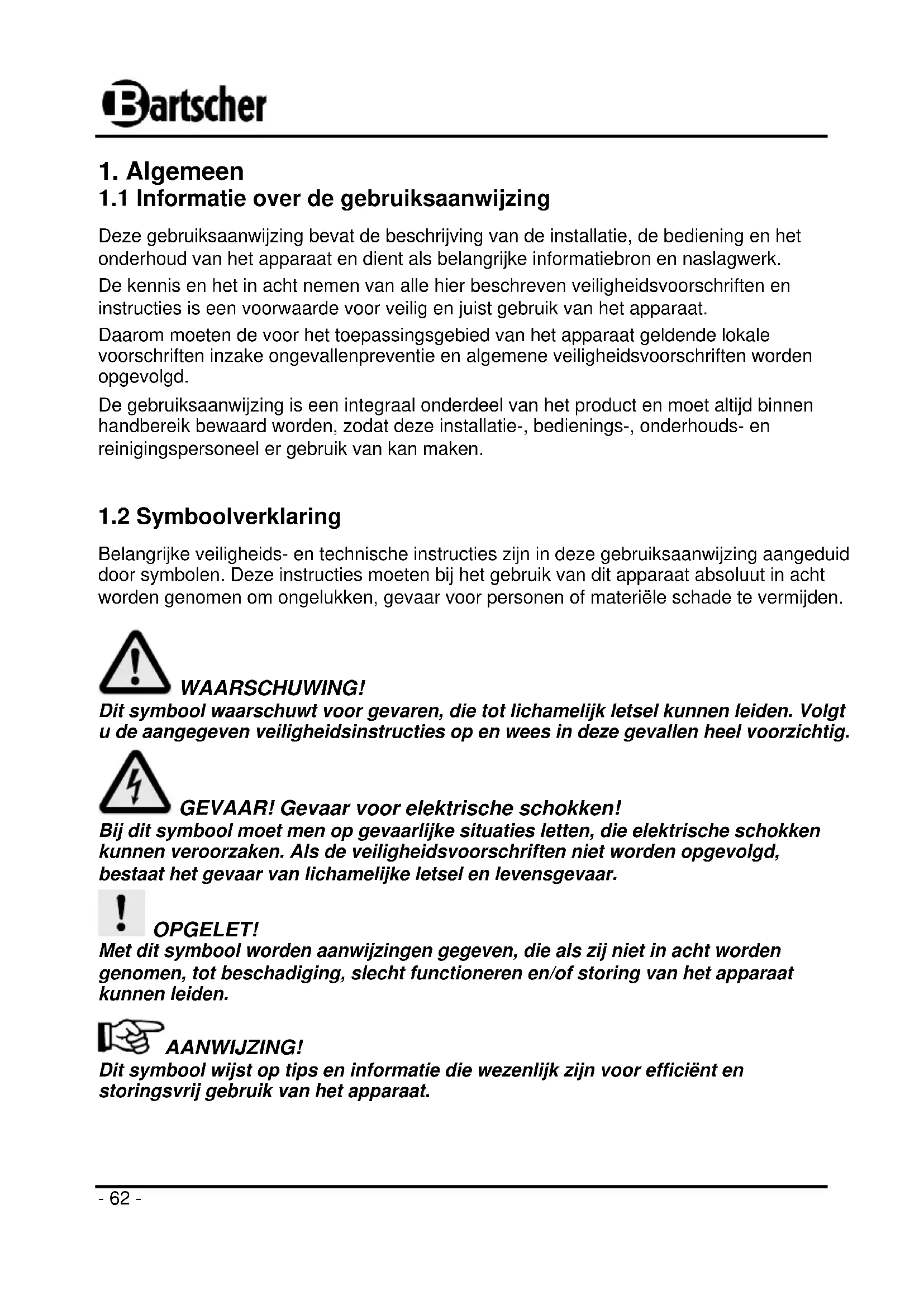 1.1 Informatie over de gebruiksaanwijzing