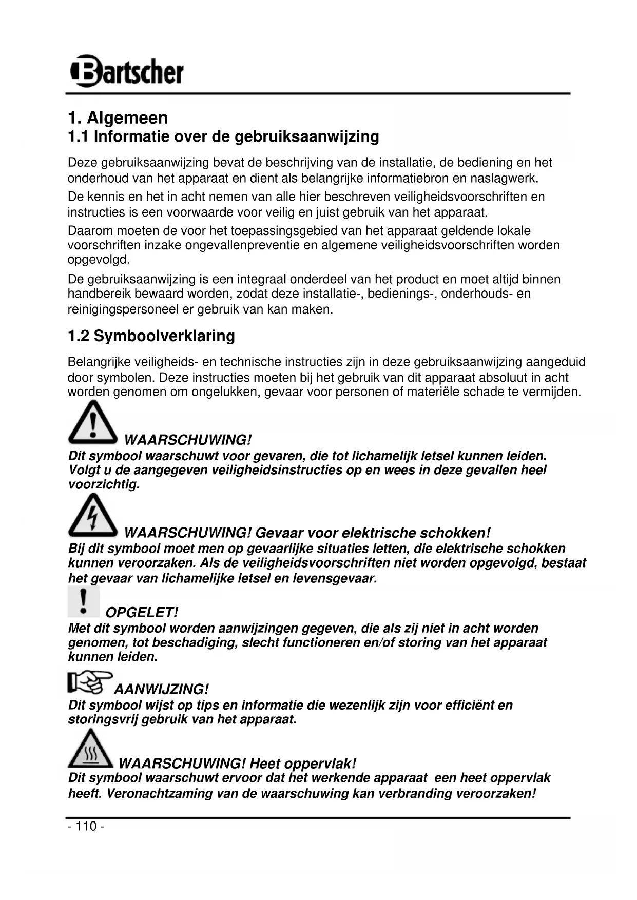 Lees voor het gebruik de gebruiksaanwijzing door en bewaar hem op een goed bereikbare plaats! 1. Algemeen ............................................................................................................... 110
