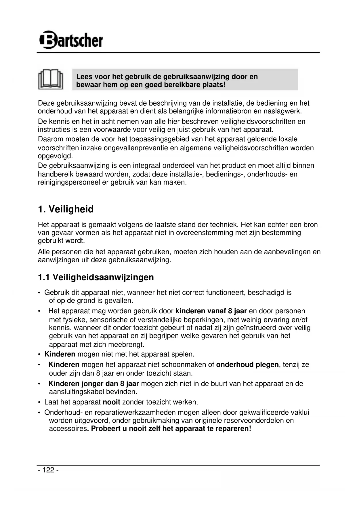 Vind de handleiding van het apparaat gratis IK 20TC BARTSCHER in PDF-formaat.