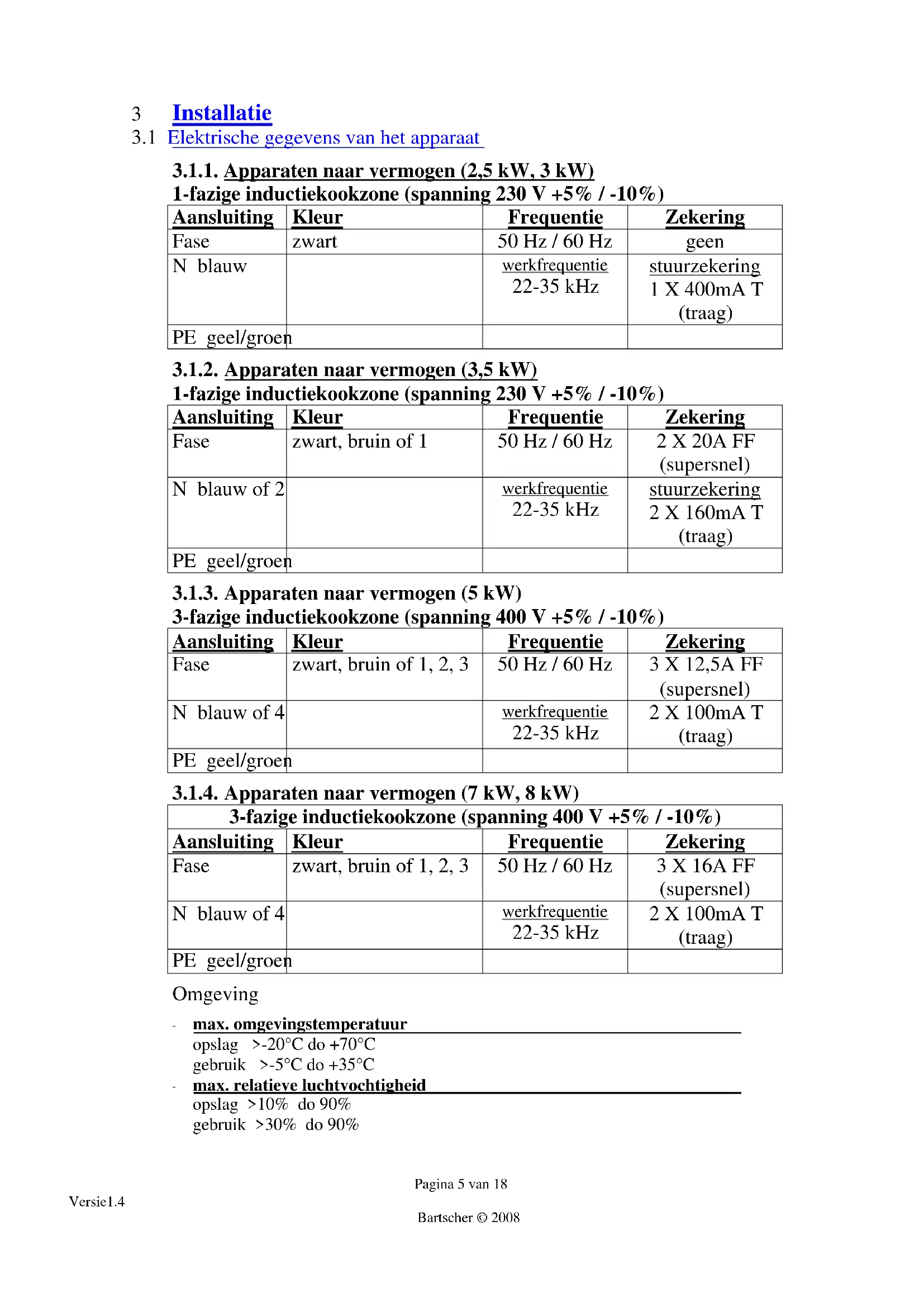 3.1.1. Apparaten naar vermogen (2,5 kW, 3 kW) 5