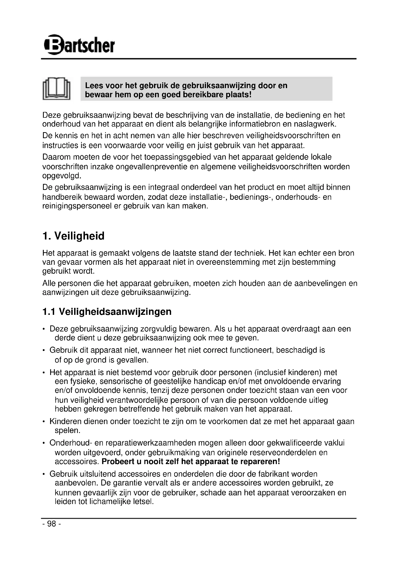 GEBRUIKSAANWIJZING 150151 BARTSCHER