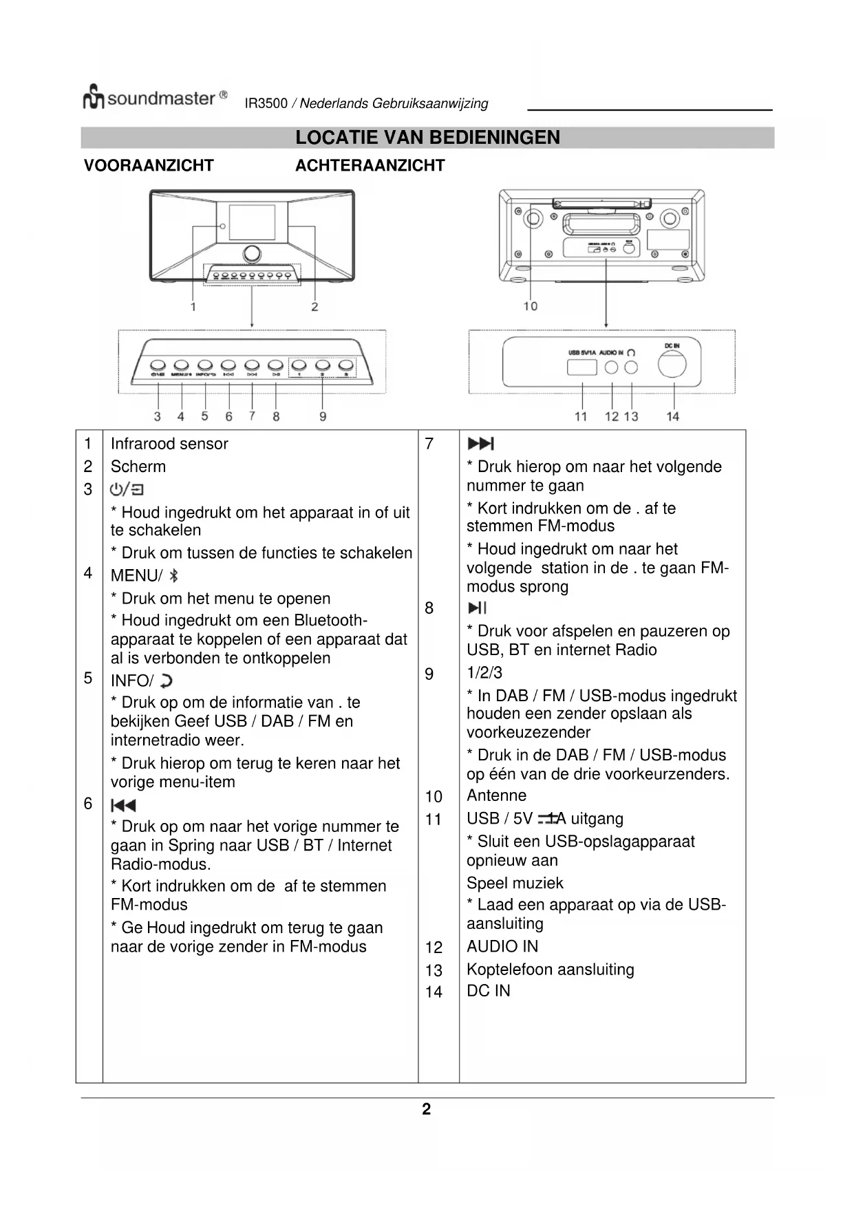 IR3500 - Radio Soundmaster - Gratis gebruiksaanwijzing en handleiding