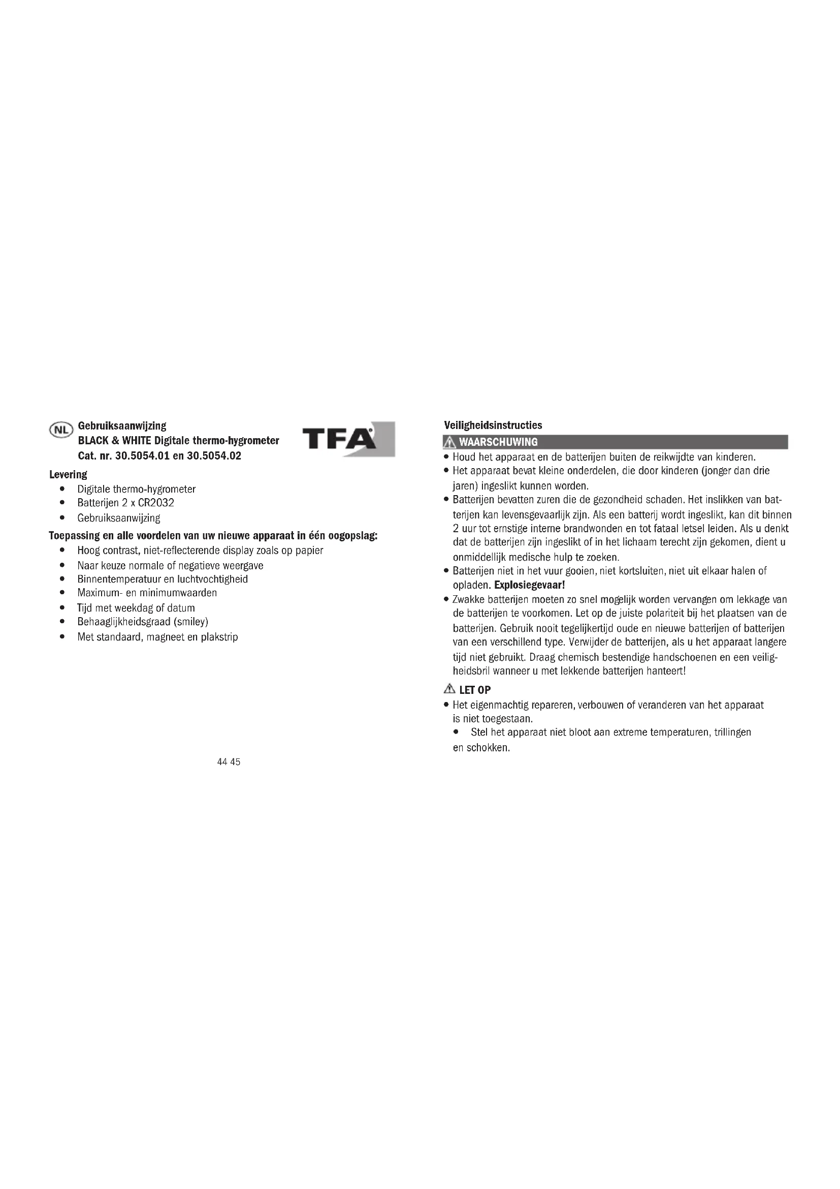 GEBRUIKSAANWIJZING Black & White 30.5054.01 TFA