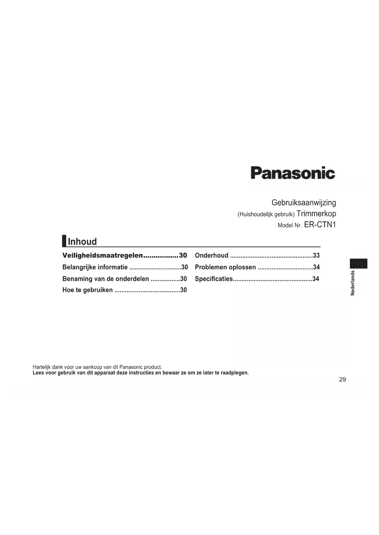 GEBRUIKSAANWIJZING ERCTN1 PANASONIC