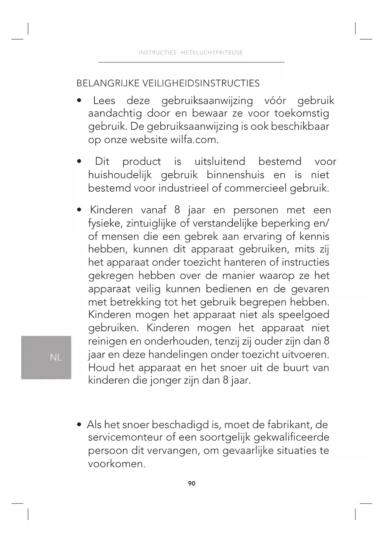 - Lees deze gebruiksaanwijzing vóór gebruik aandachtig door en bewaar ze voor toekomstig gebruik. De gebruiksaanwijzing is ook beschikbaar op onze website wilfa.com.