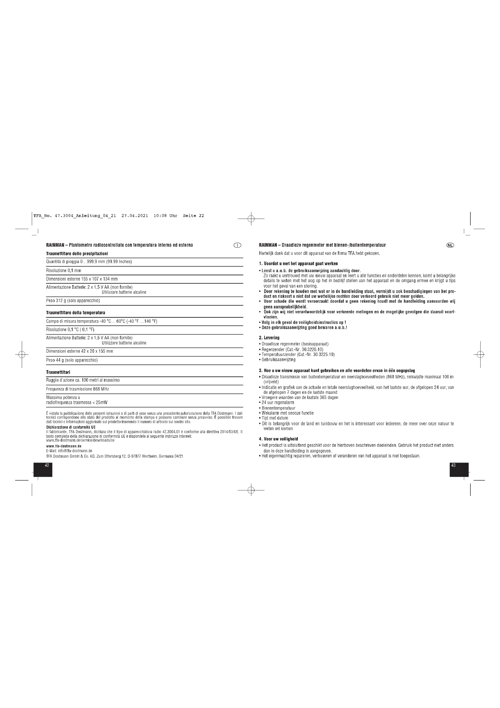 Vind de handleiding van het apparaat gratis Rainman 47.3004.01 TFA in PDF-formaat.