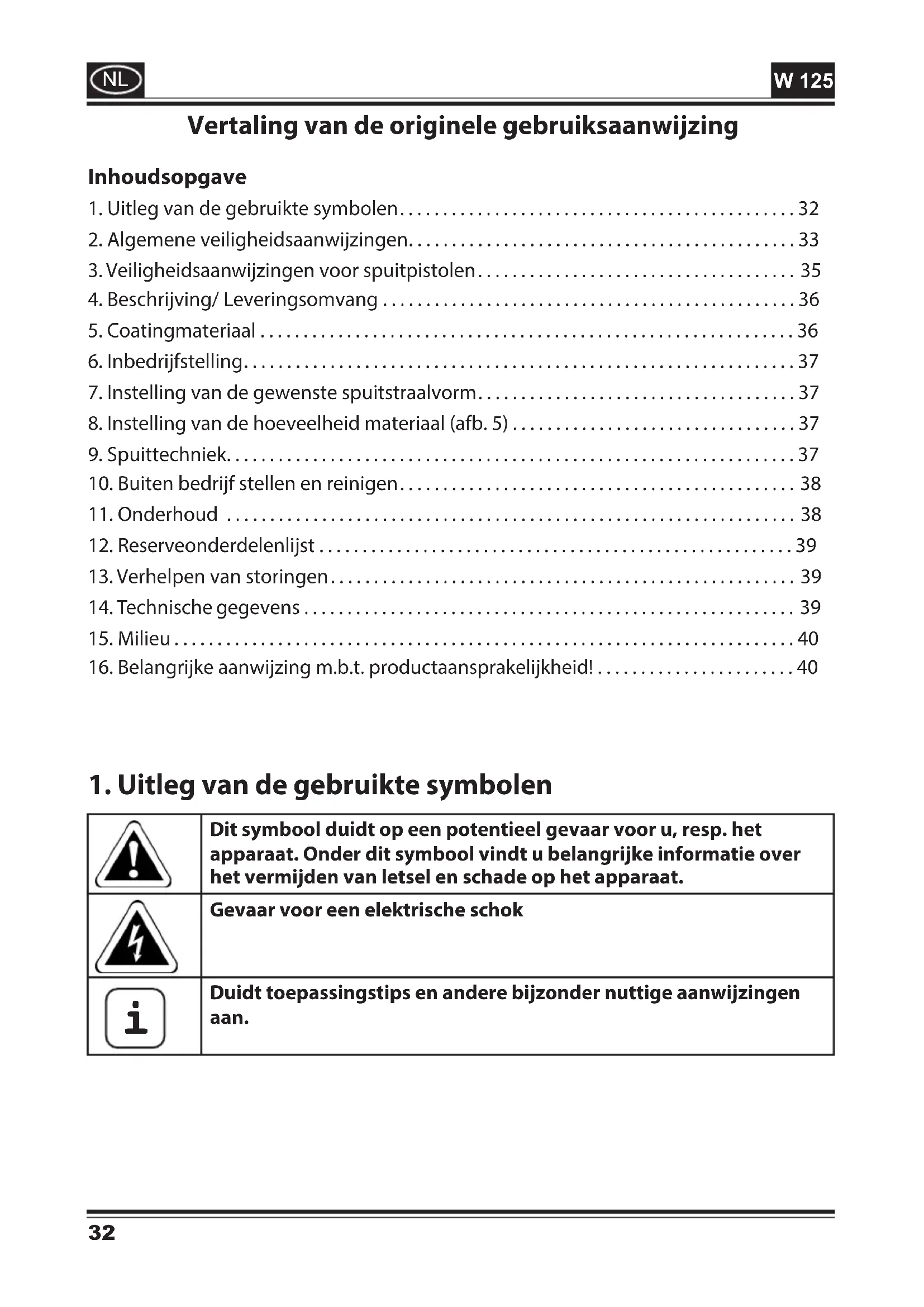 3. Veiligheidsaanwijzingen voor spuitpistolen ..................................... 35