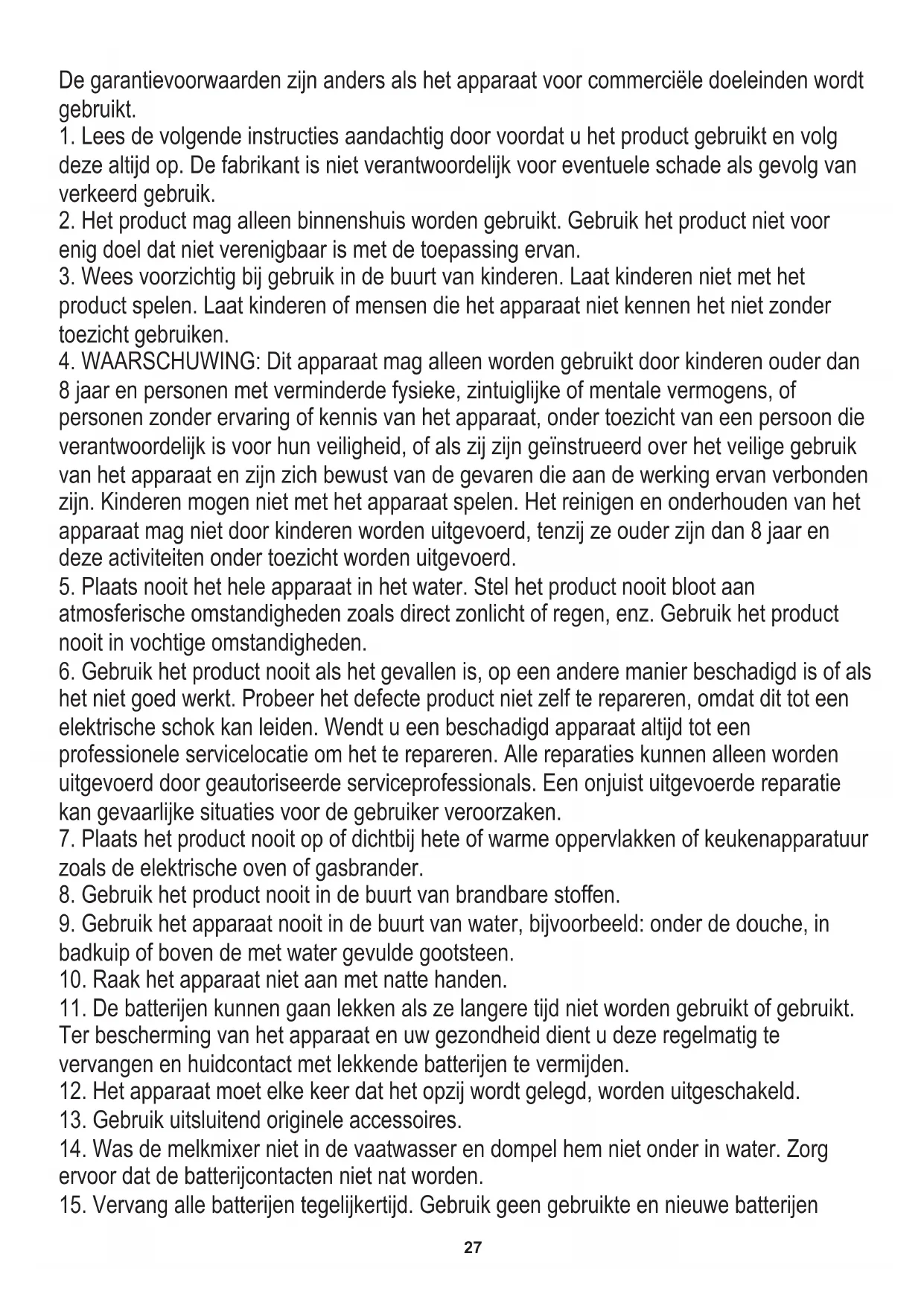 - WAARSCHUWING: Dit apparaat mag alleen worden gebruikt door kinderen ouder dan 8aar en personen met verminderde fusicke, zintuiglijke of mentale vermogens, of personen zonder ervaring of kennis van het apparaat, onder toezicht van een persoon die verantwoordelijk is voor hun veiligheid, of als zij zich geinstrueerd over het veilige gebruik van het apparaat enijken zich bewust van de gezaren die aan de werkung ervan verbonden�n. Kinderen mogen Niet met het apparaat spelen. Het reinigen en onderhoden van het apparaat mag nicht door kinderen worden uitgevoerd, tenzij ze ouder�n dan 8aar en deze activiteiten onder toezicht worden uitgevoerd.
