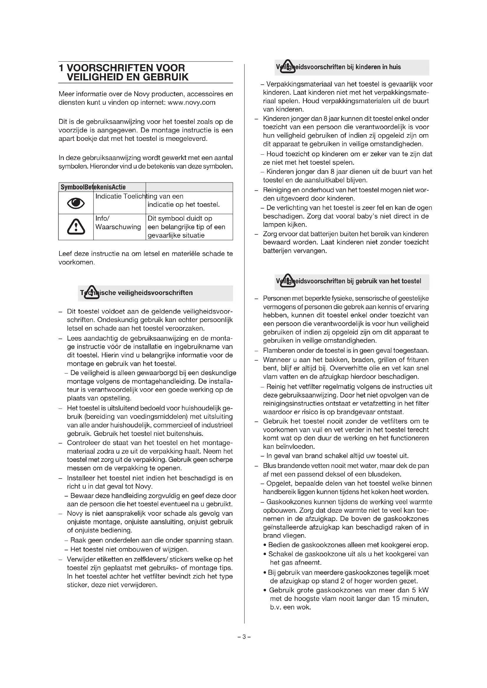 Installeer het toestel niet indien het beschadigd is en richt u in dat geval tot Novy. − Bewaar deze handleiding zorgvuldig en geef deze door aan de persoon die het toestel eventueel na u gebruikt.