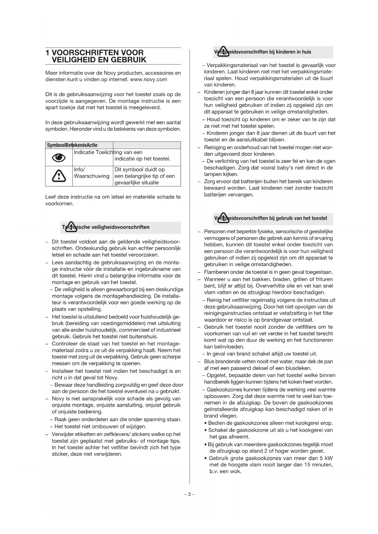 - Novy is nicht aansprakelijk voor schade als gevolg van onjuiste montage, onjuiste aansluiting, onjuist gebruik of onjuiste bediening.