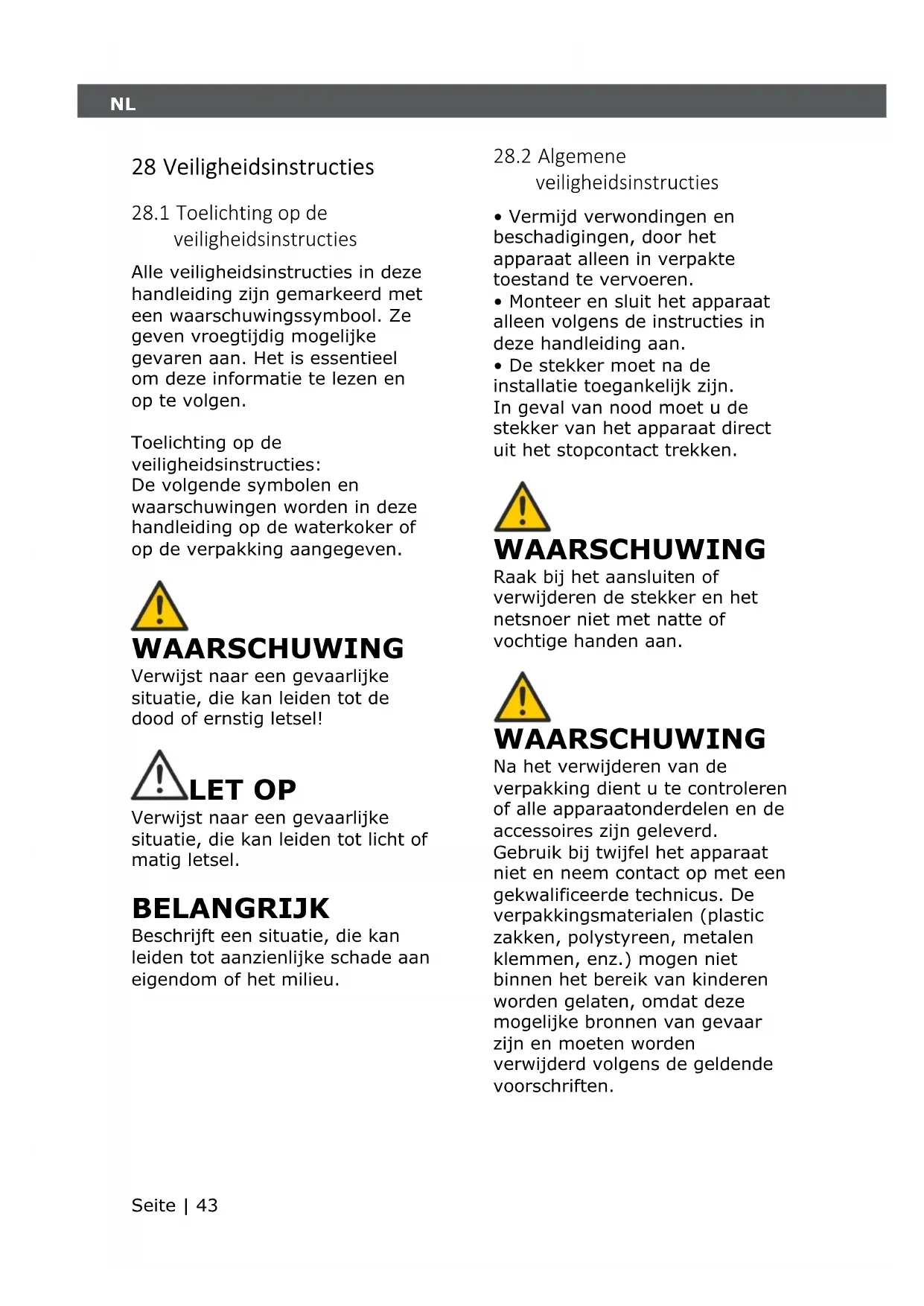 28 Veiligheidsinstructies