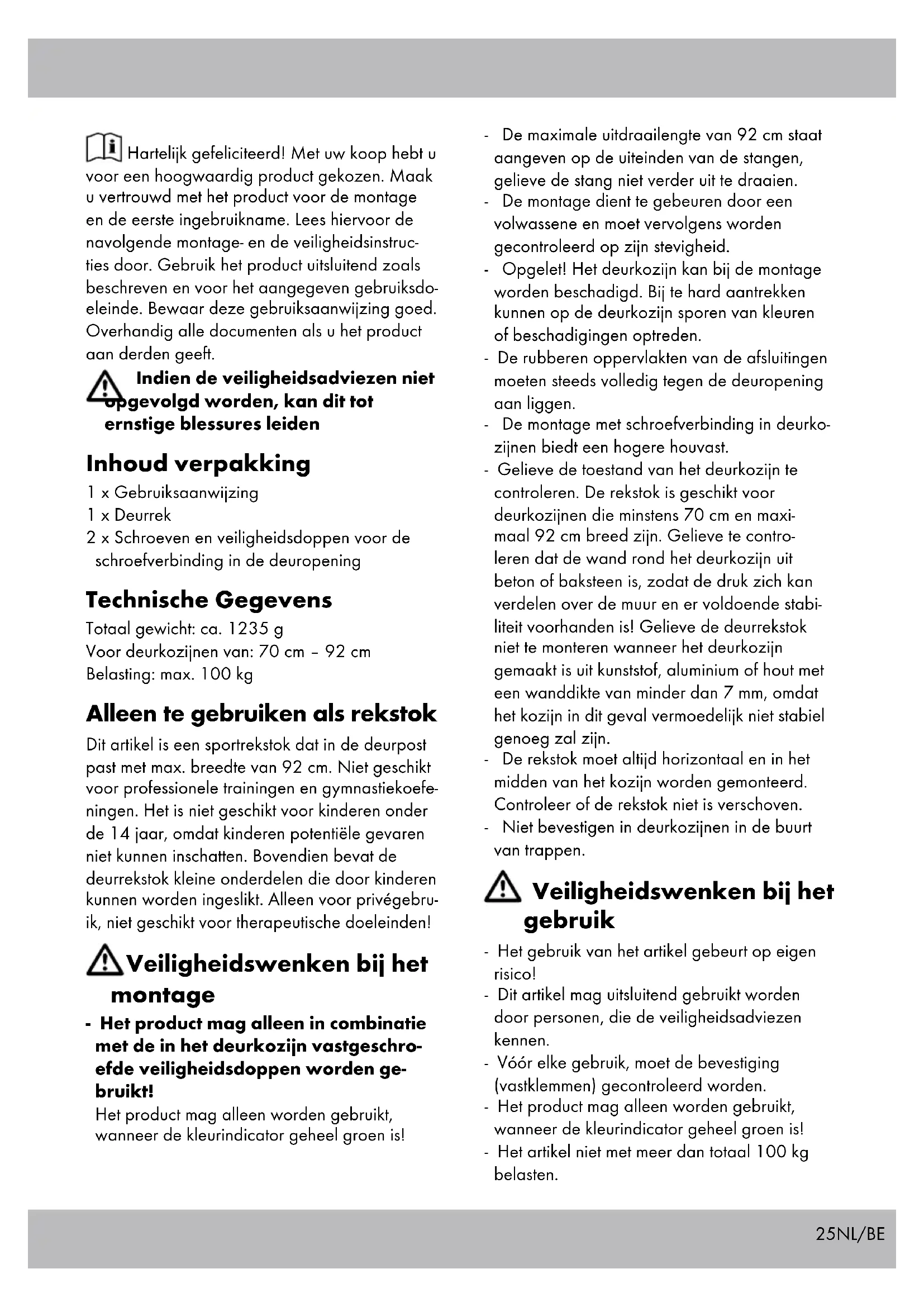 Download de handleiding voor uw Optrekstang in PDF-formaat gratis! Vind uw handleiding IAN 24602 - CRIVIT en neem uw elektronisch apparaat weer in handen. Op deze pagina staan alle documenten die nodig zijn voor het gebruik van uw apparaat. IAN 24602 van het merk CRIVIT.