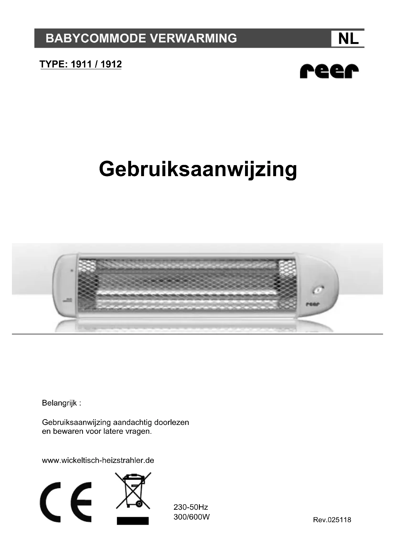230-50Hz 300/600W Rev.025118Ons straalkacheltje voor boven de aankleedcommode geeft behaaglijke directe warmte in de omtrek van aankleedcommodes. U kunt hem echter ook voor het snelle opwarmen van badkamers, hobbyruimtes, hallen, beschutte terrassen en balkons gebruiken. Belangrijke opmerkingen: