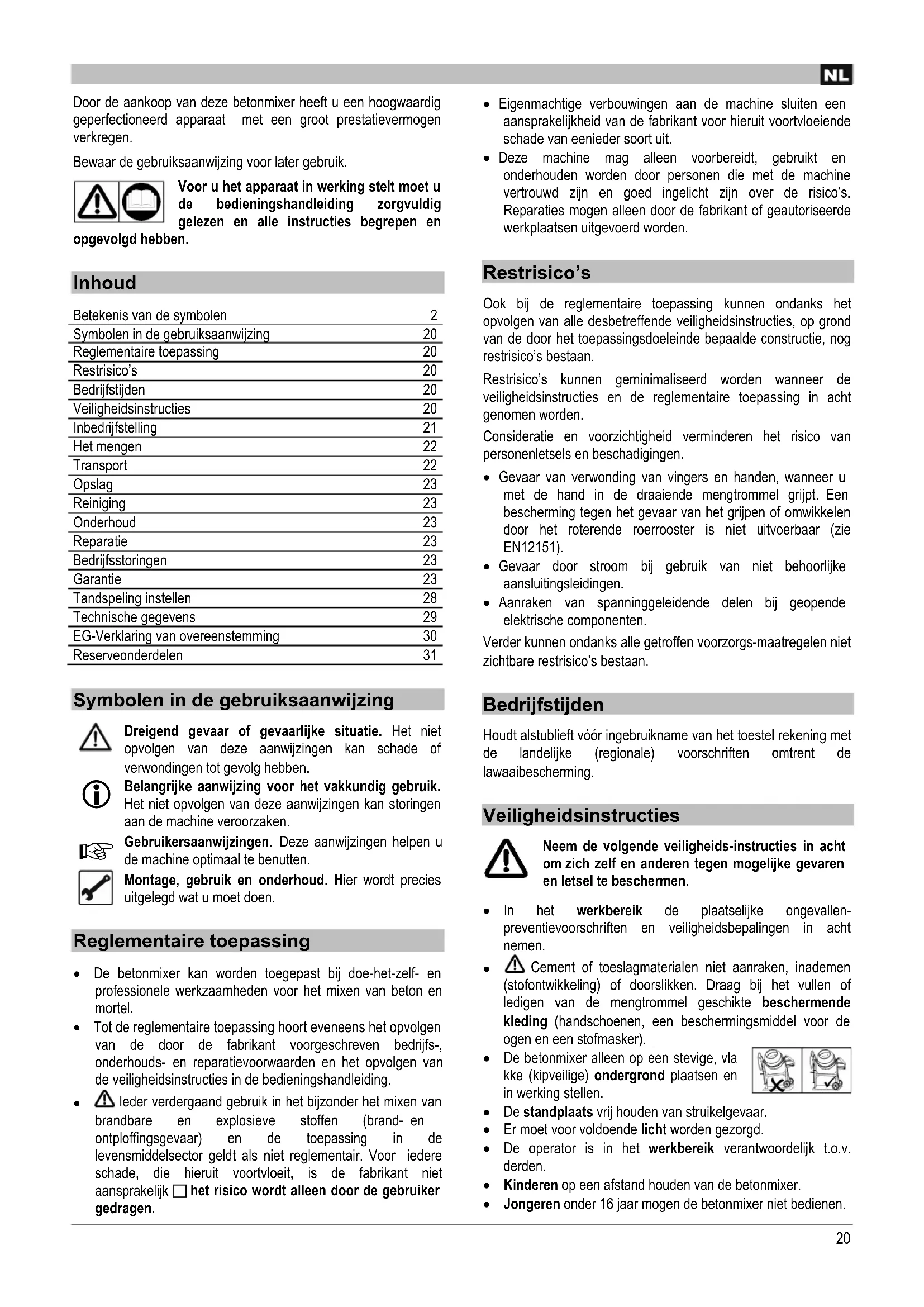 - Jongeren onder 16 jaar mogen de betonmixer niet bedienen.21
