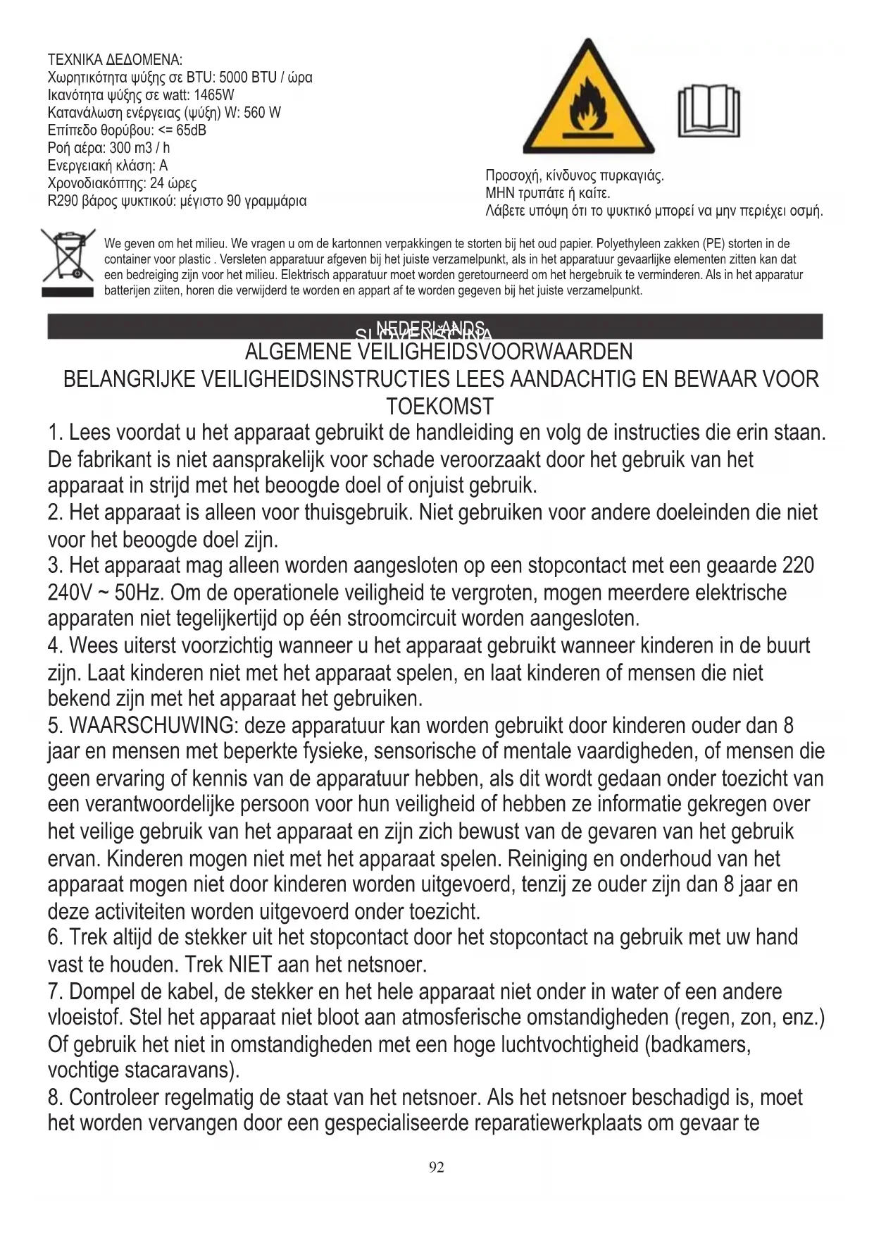 19. Neem de volgende basisvoorzorgsmaatregelen in acht om het risico op brand,