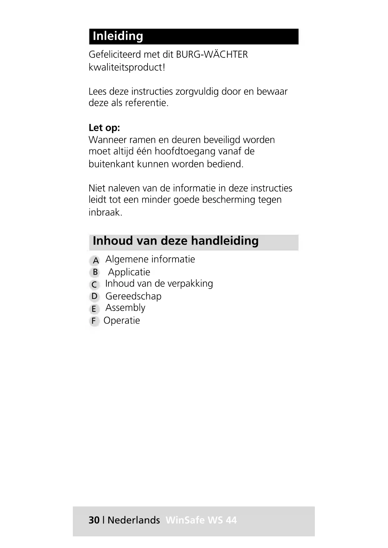 GEBRUIKSAANWIJZING WinSafe WS 44 Burg Wächter