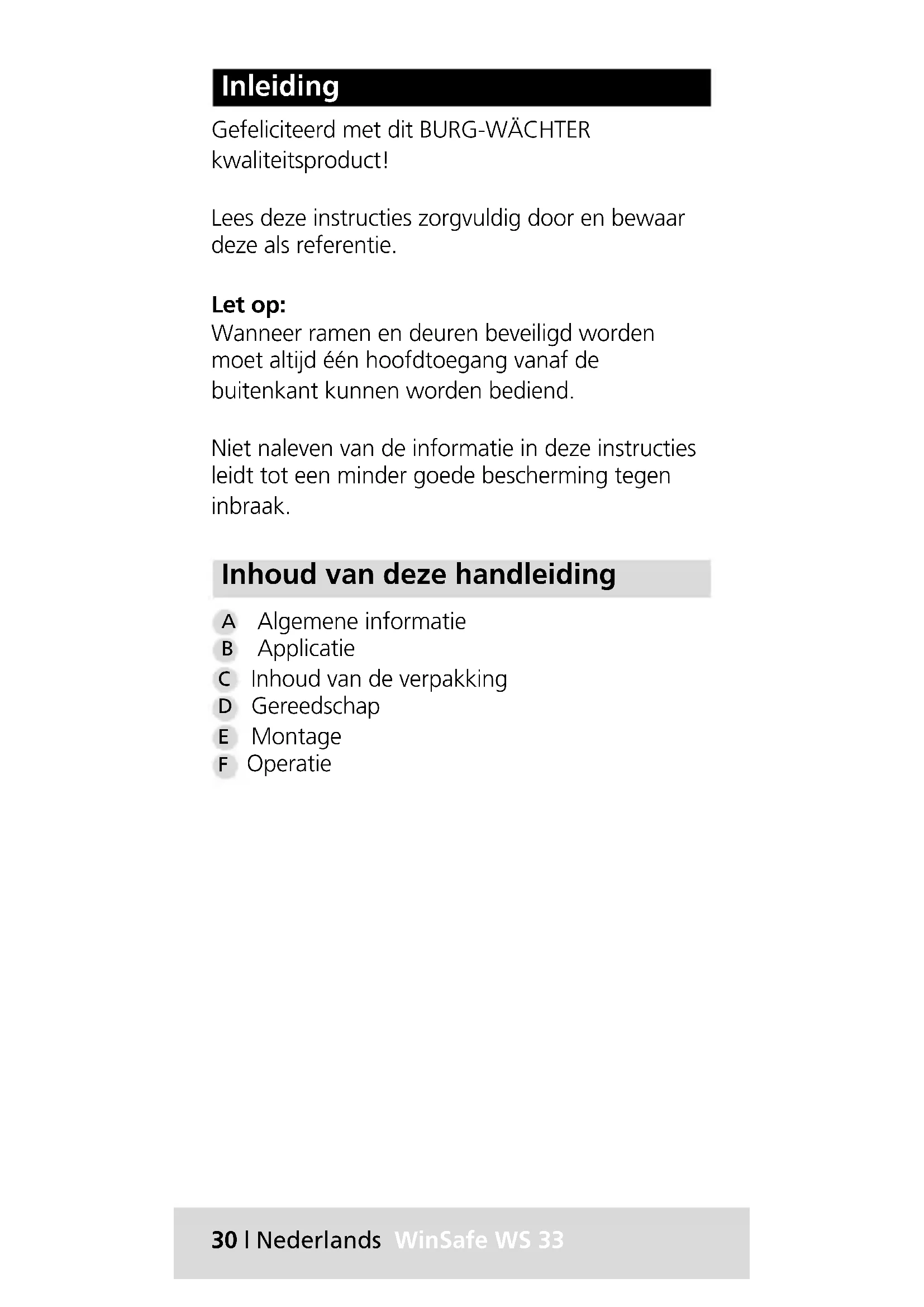 GEBRUIKSAANWIJZING WinSafe WS 33 Burg Wächter
