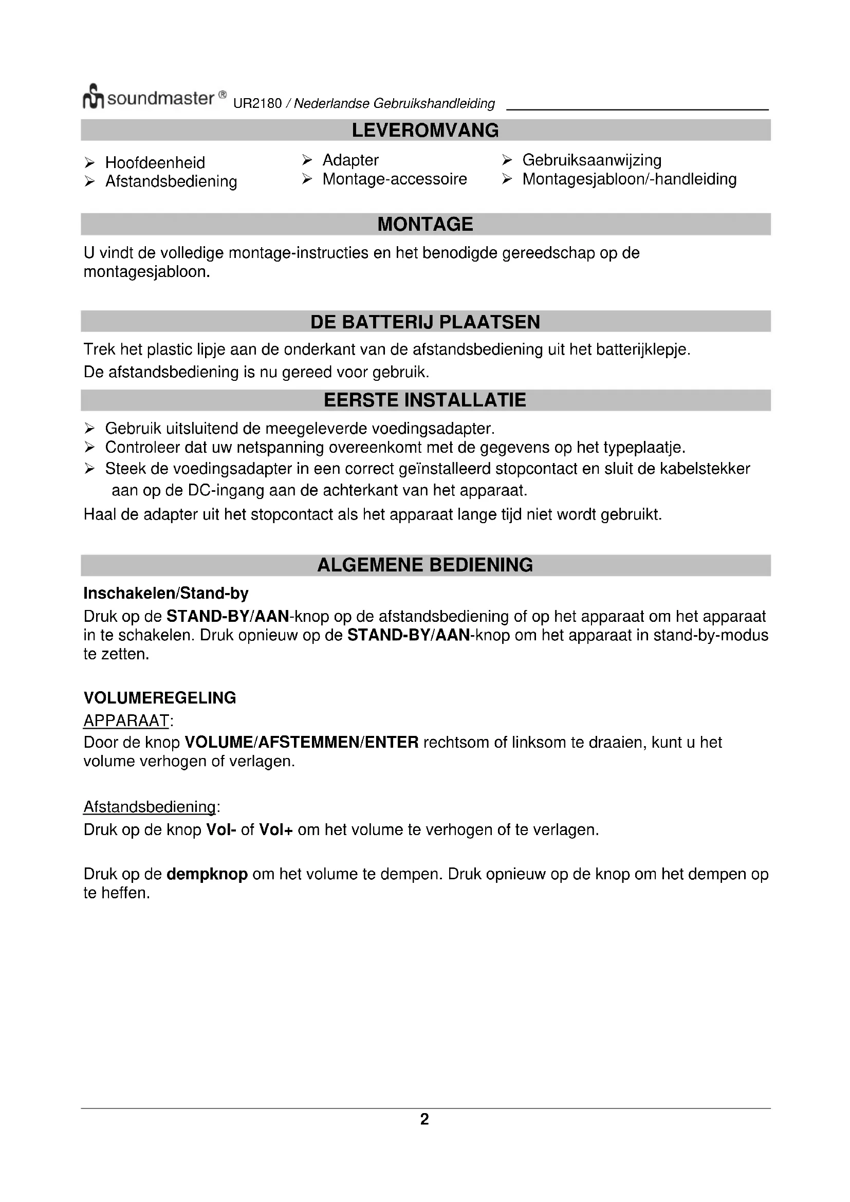 GEBRUIKSAANWIJZING UR2180 Soundmaster