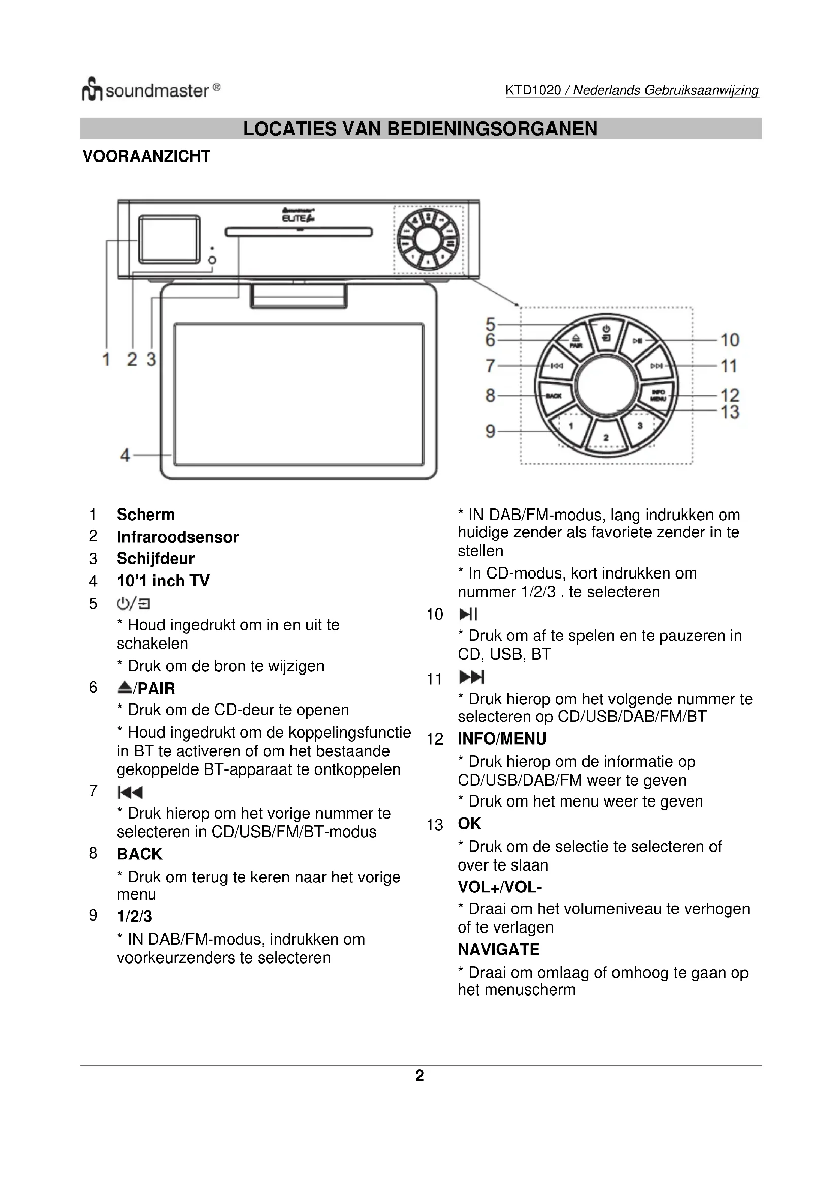 GEBRUIKSAANWIJZING KTD1020 Soundmaster