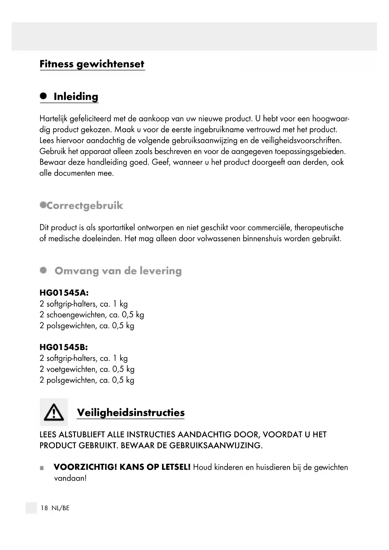 VOORZICHTIG! KANS OP LETSEL! Houd kinderen en huisdieren bij de gewichten vandaan!