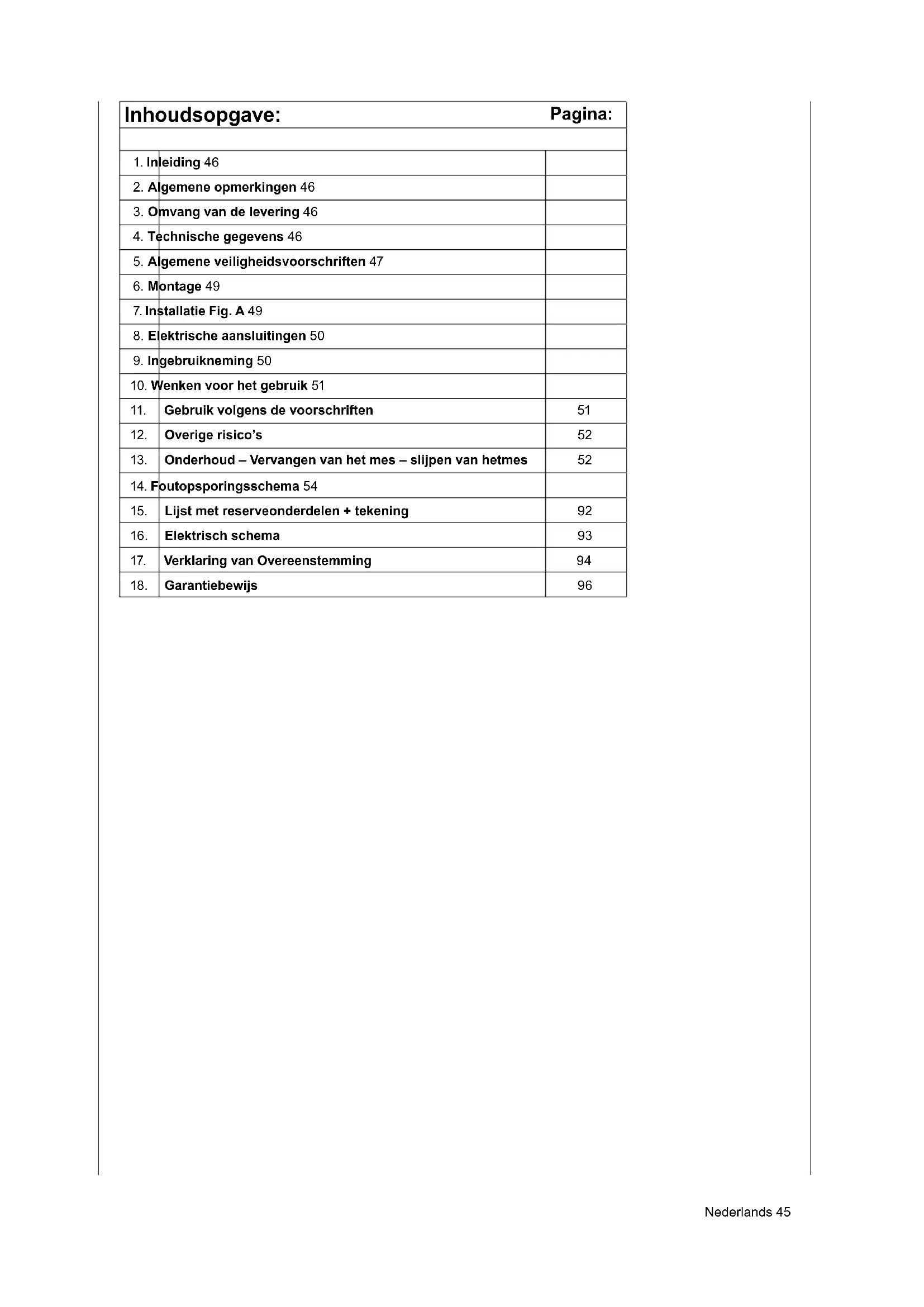 3. Omvang van de levering 46