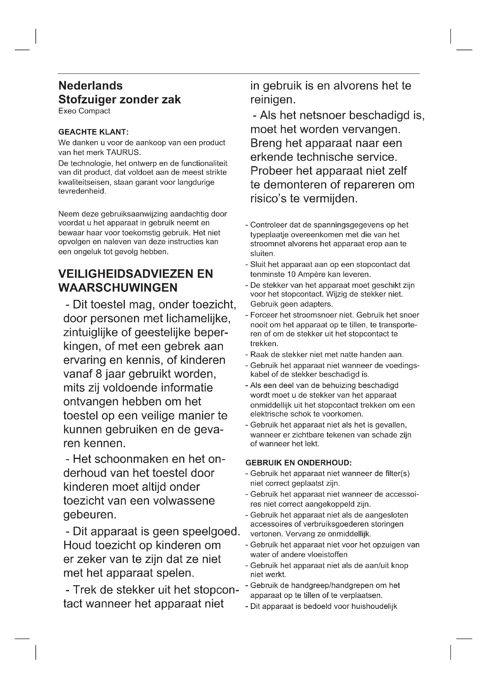 Exeo Compact - Stofzuiger TAURUS - Gratis gebruiksaanwijzing en handleiding