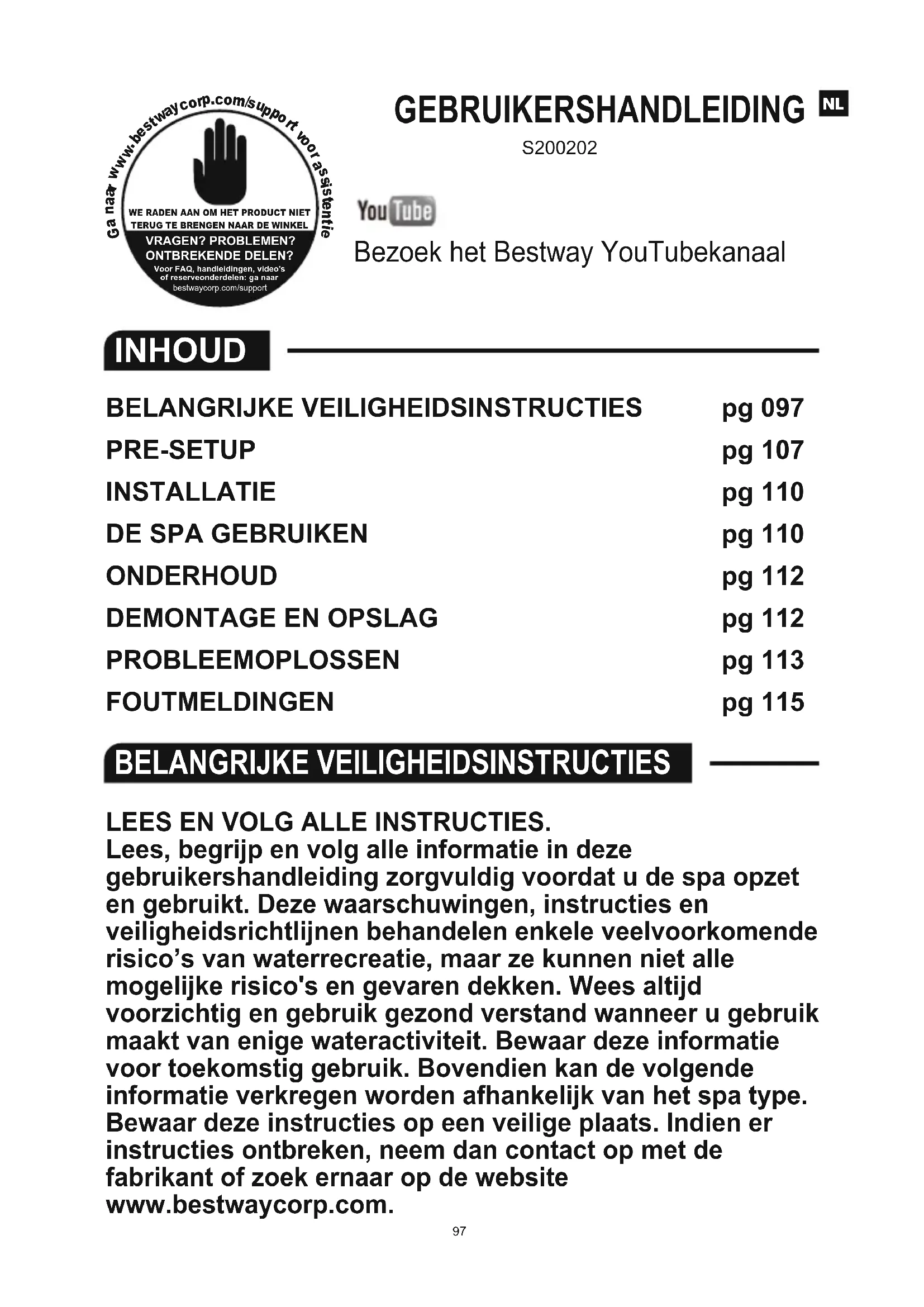 Bezoek het Bestway YouTubekanaal GEBRUIKERSHANDLEIDING WAARSCHUWINGEN – VEILIGHEIDSINSTALLATIE