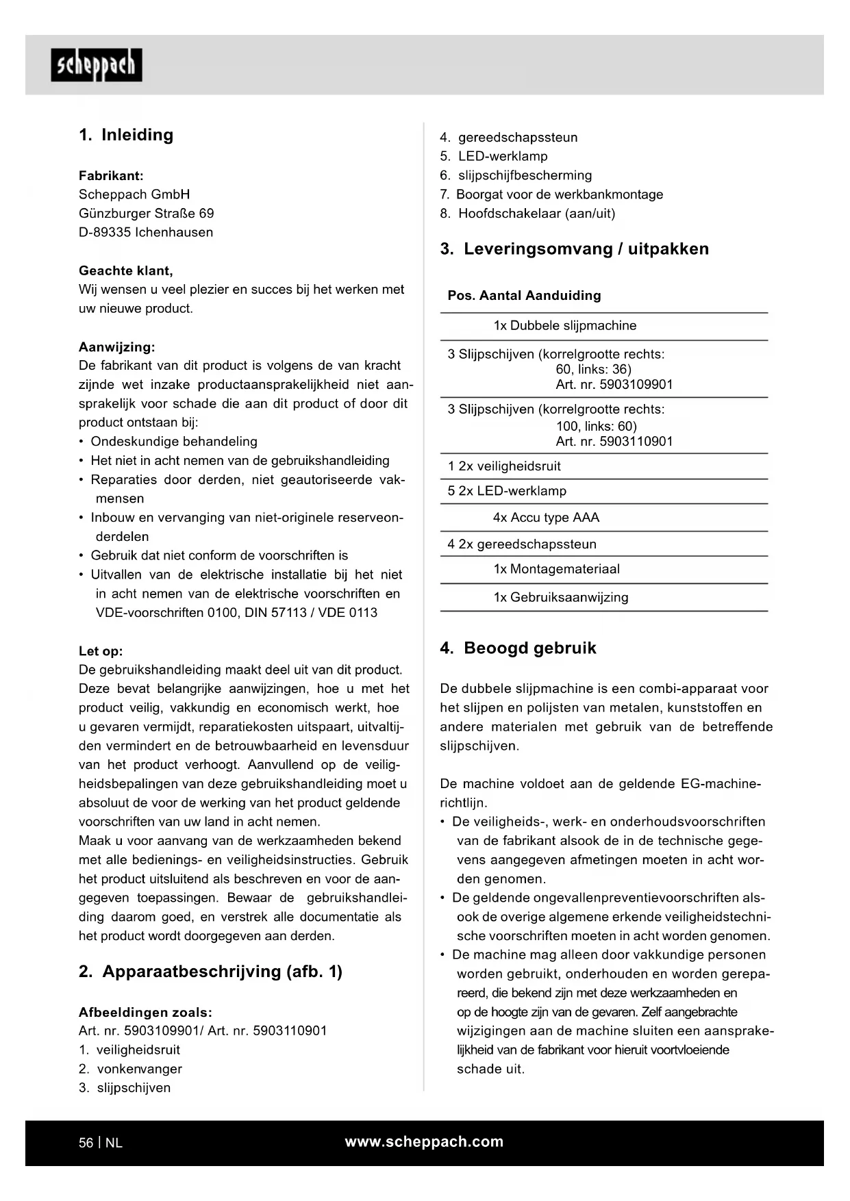 - Leveringsomvang / uitpakken 56