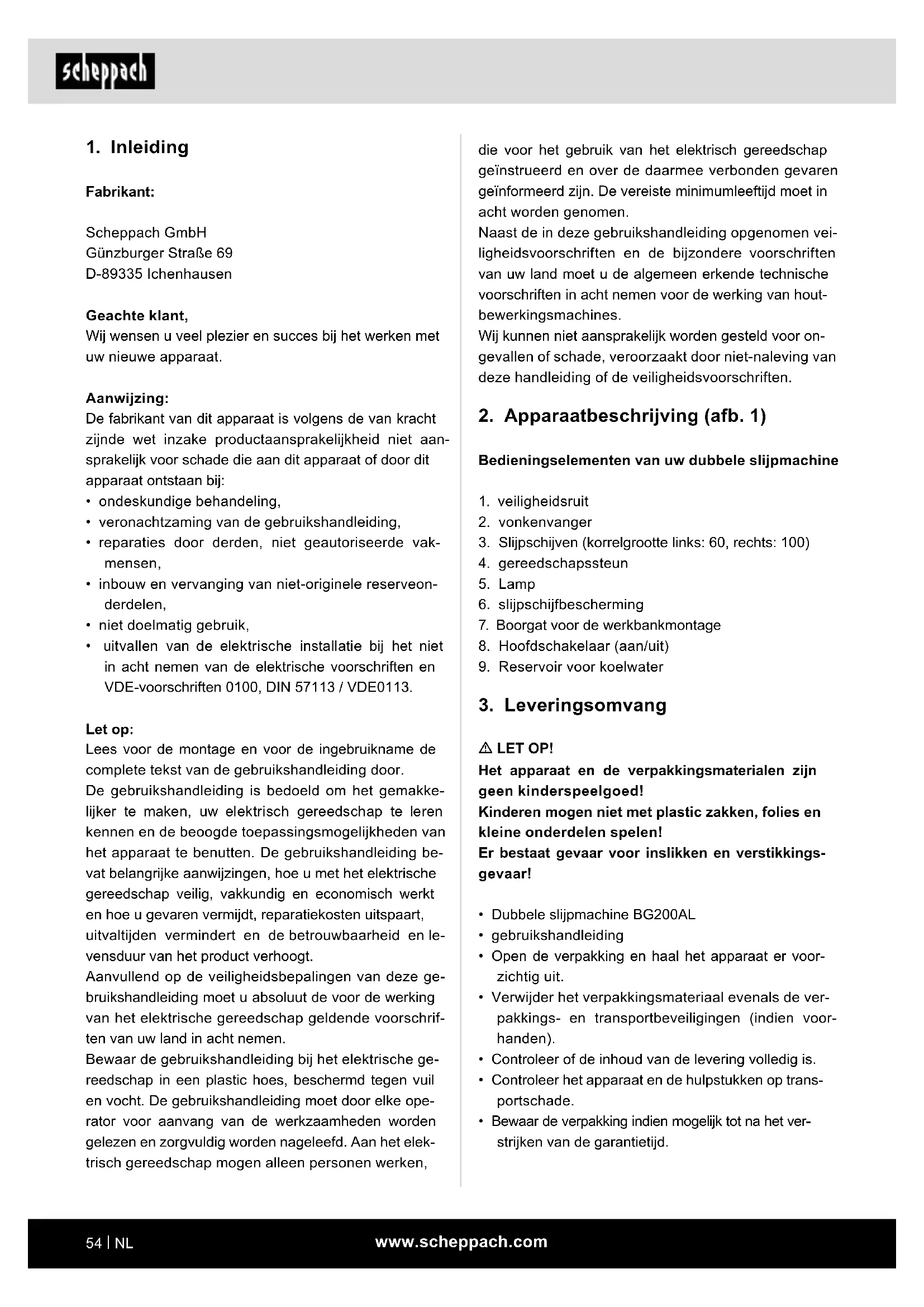 GEBRUIKSAANWIJZING BG200AL SCHEPPACH