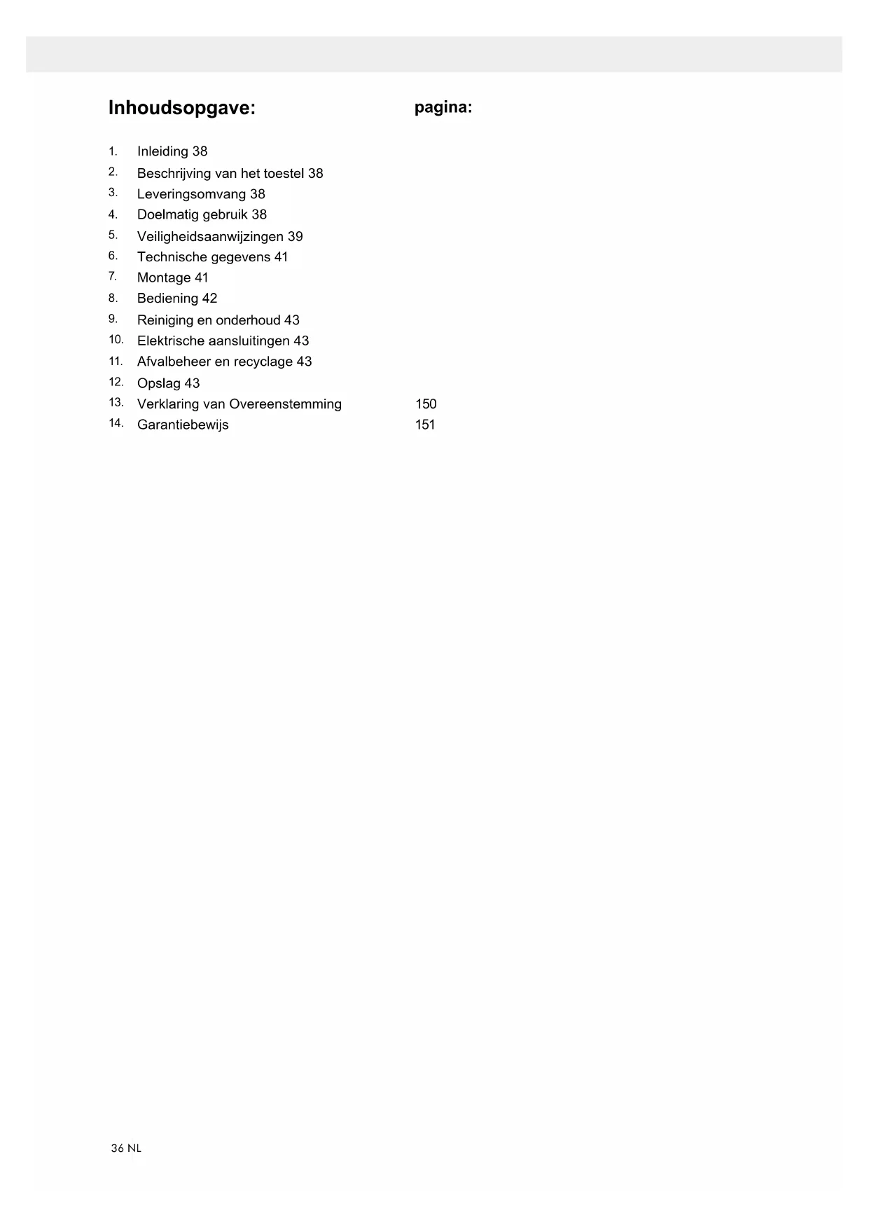 Garantiebewijs 15137NL Verklaring van de symbolen op het toestel