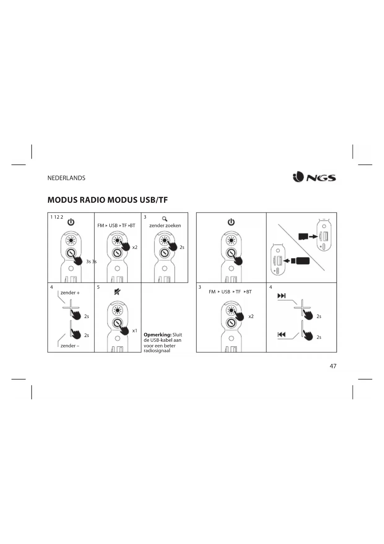 Opmerking: Sluit de USB-kabel aan voor een beter radiosignaalGEBRUIKSAANWIJZING