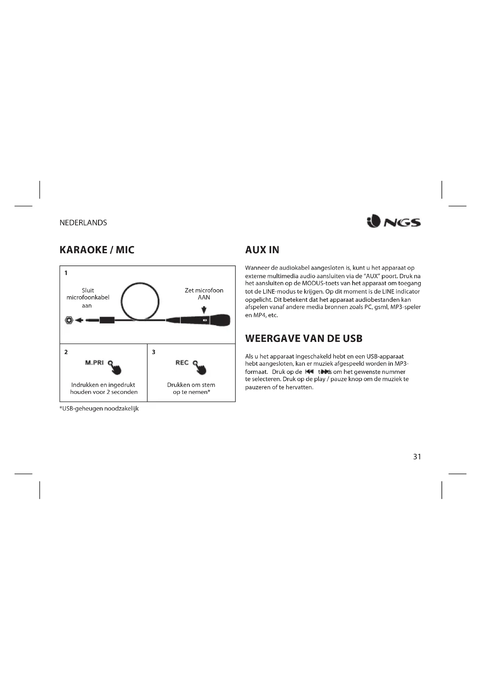 Wanner de audiokabel aangesloten is, kurz u het apparaat op externe multimedia audio aansluiten via de "AUX" poort. Druk na het aansluiten op de MODUS-toets van het apparaat om toegang tot de LINE-modus te krijgen. Op dit moment is de LINE indicator opgelicht. Dit betekent dat het apparaat audiobestanden kan afspelen vanaf andere media bronnen zoals PC, gsml, MP3-speler en MP4, etc.