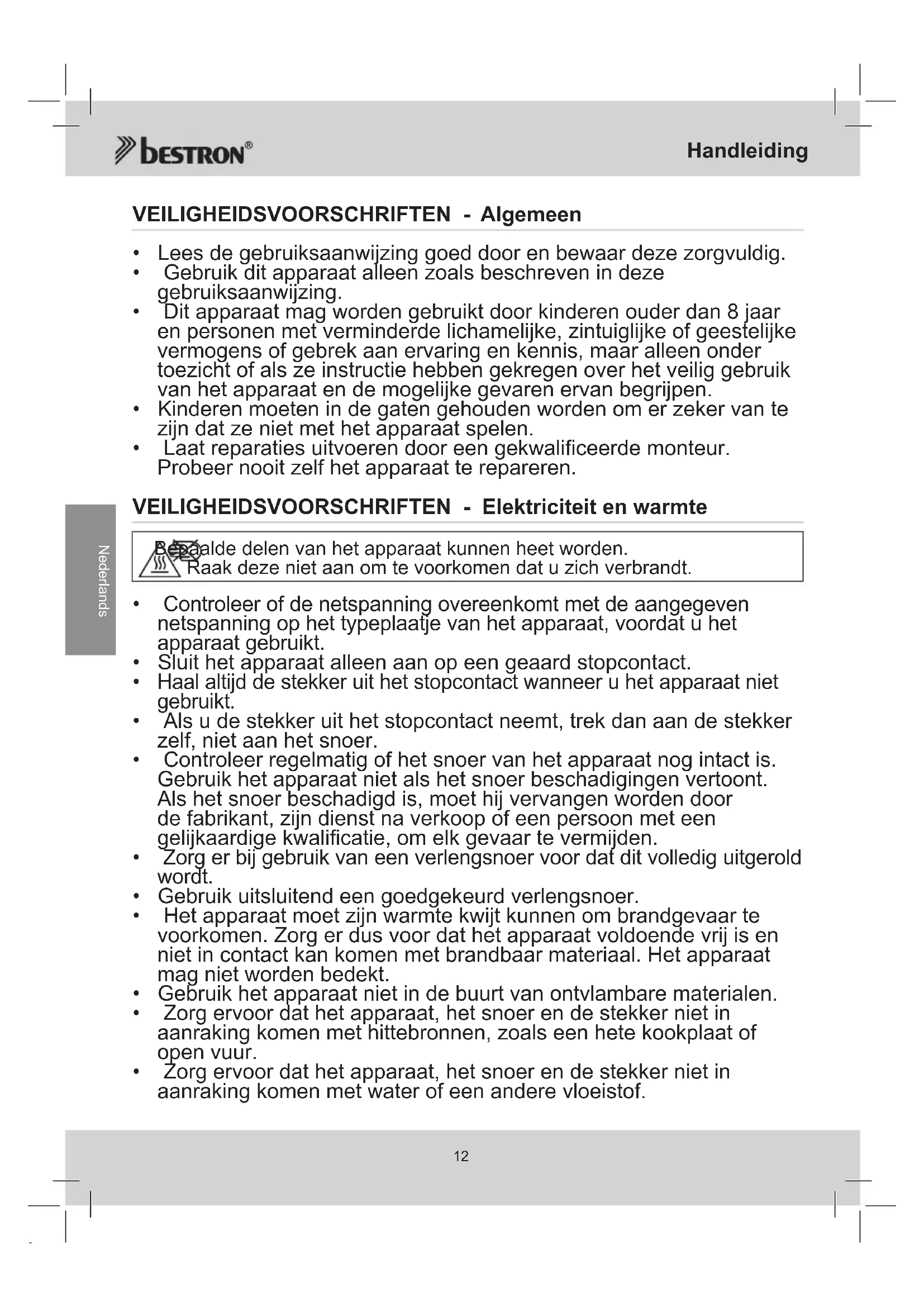 Nederlands VEILIGHEIDSVOORSCHRIFTEN - Algemeen