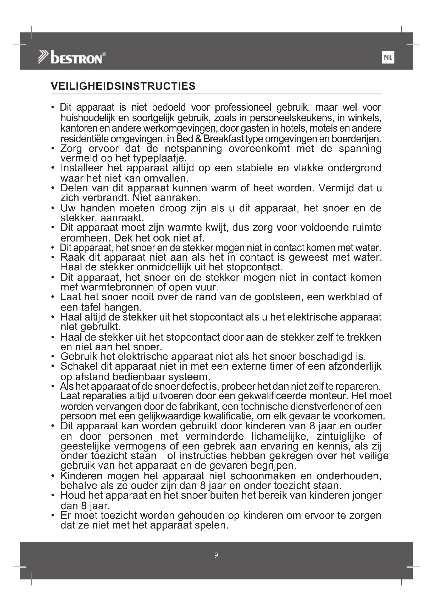 GEBRUIKSAANWIJZING AWK2200BW BESTRON
