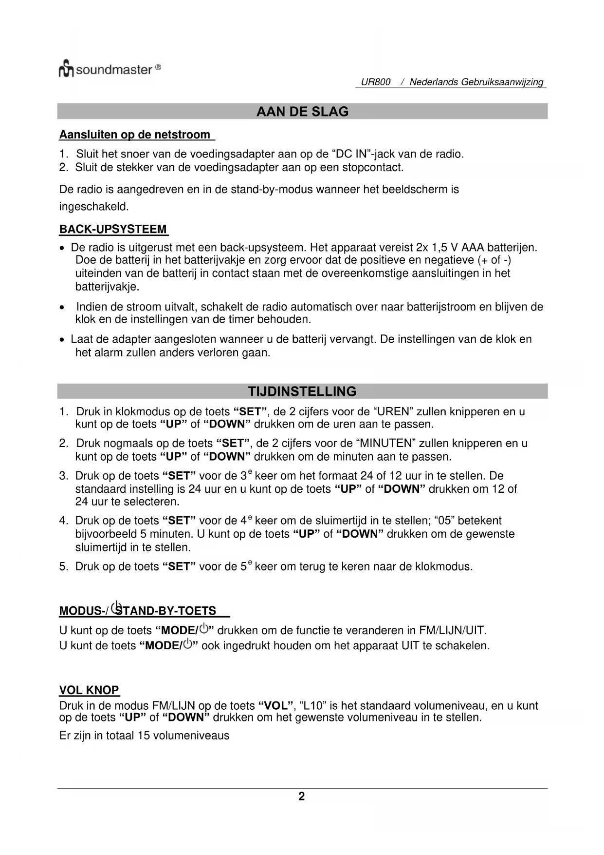 GEBRUIKSAANWIJZING UR800 Soundmaster