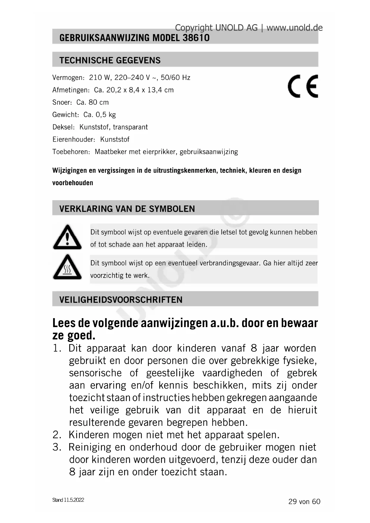 Mini 38610 - Eierkoker UNOLD - Gratis gebruiksaanwijzing en handleiding