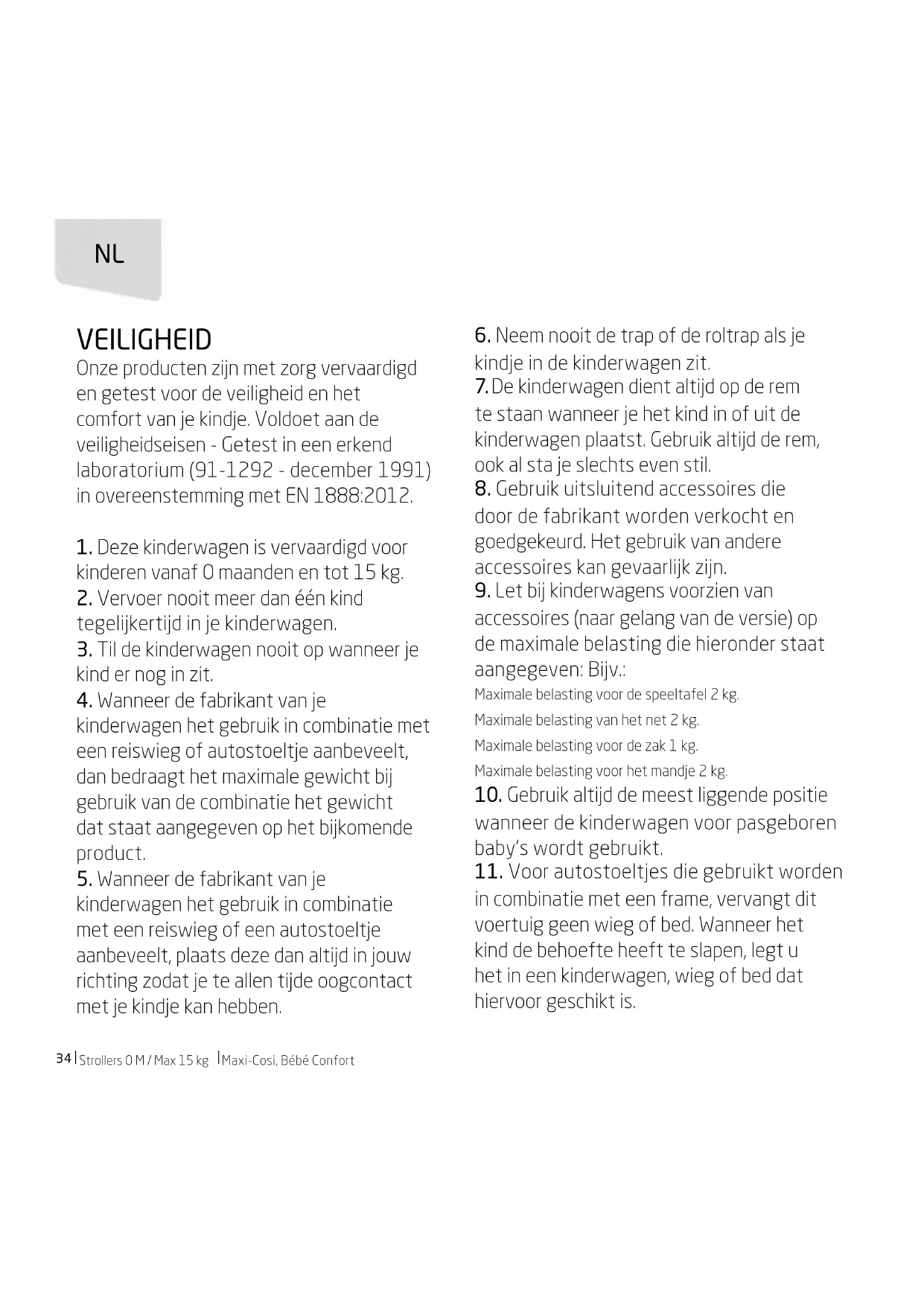 VEILIGHEID Onze producten zijn met zorg vervaardigd en getest voor de veiligheid en het comfort van je kindje. Voldoet aan de veiligheidseisen - Getest in een erkend laboratorium (91-1292 - december 1991) in overeenstemming met EN 1888:2012.