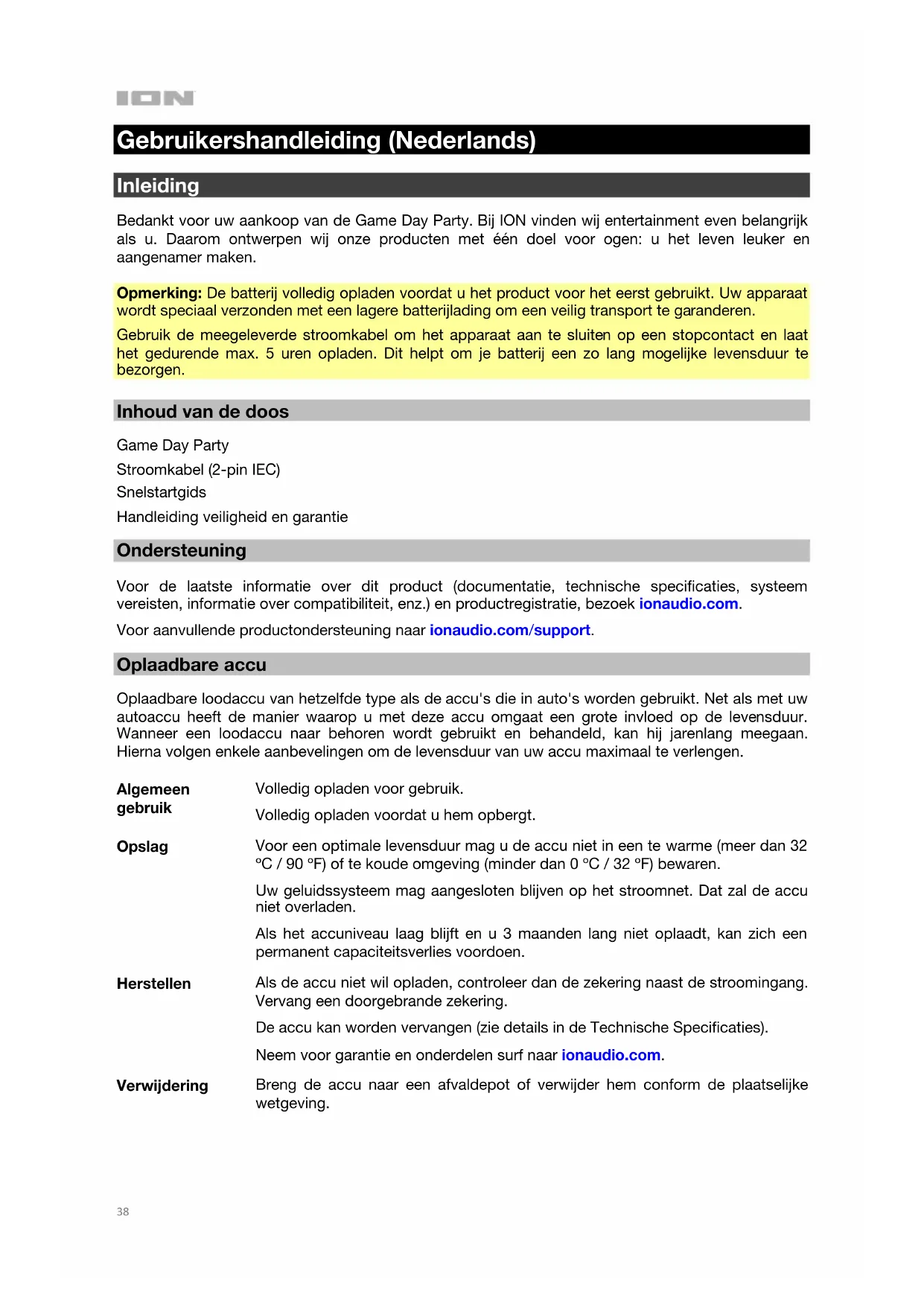 GEBRUIKSAANWIJZING Game Day Party ION