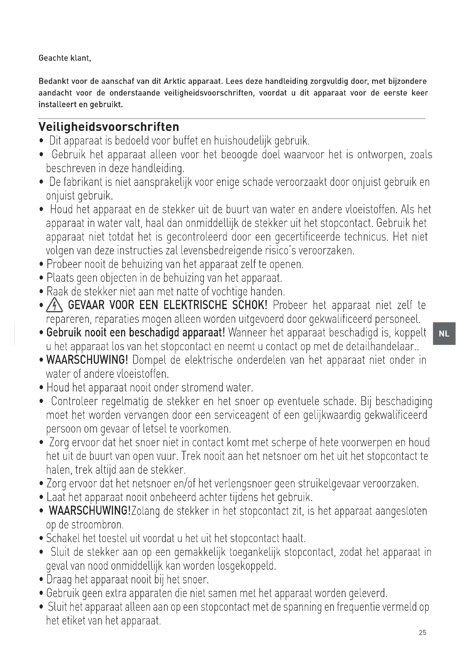 - Dit apparaat is bedoeld voor buffet en huishoudelijk gezebruik.