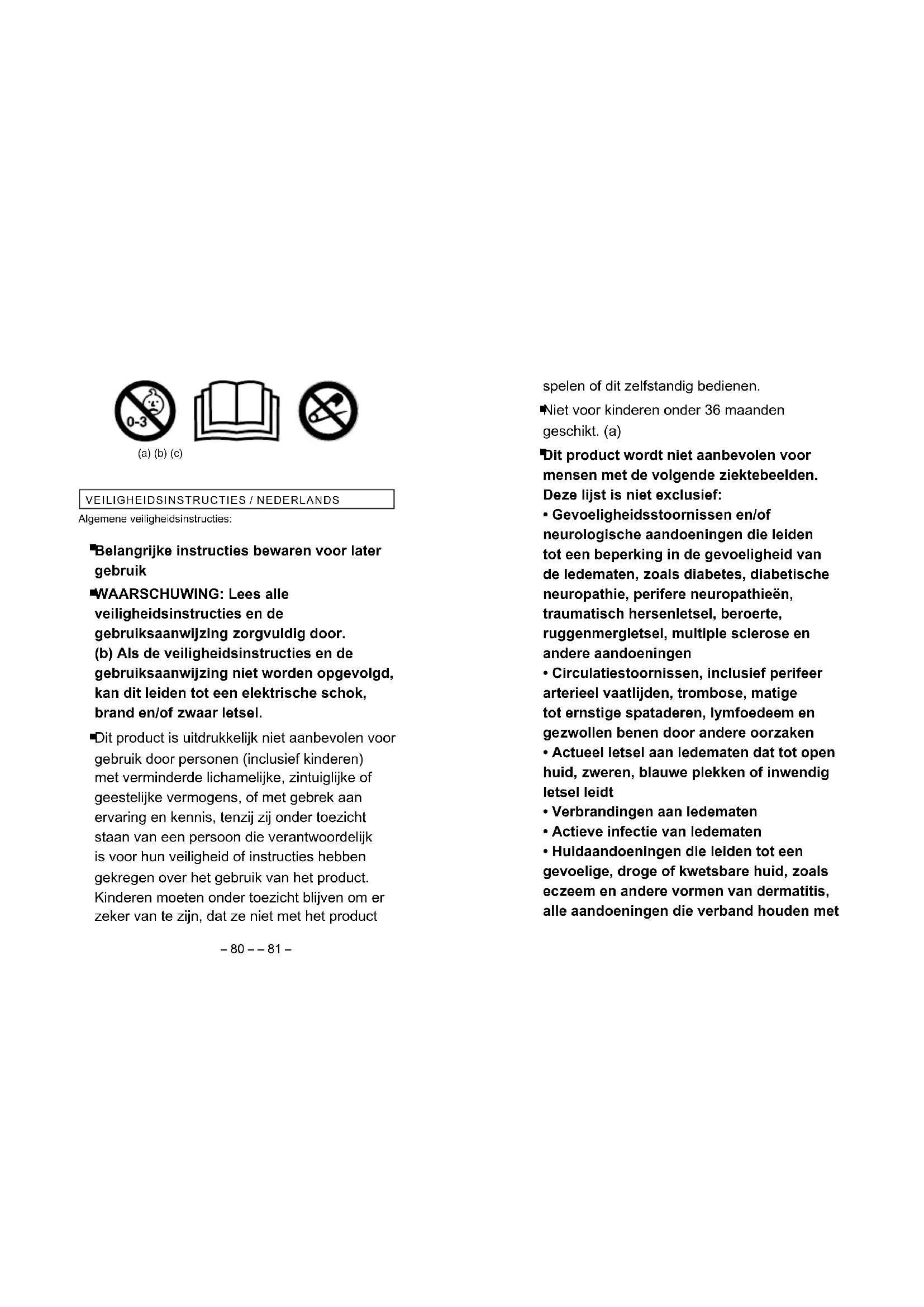 - Huidaandoeningen die leiden tot een gevoelige, droge of kwetsbare huid, zoals eczeem en andere vormen van dermatitis, alle aandoeningen die verband houden met (a) (b) (c) VEILIGHEIDSINSTRUCTIES / NEDERLANDS Algemene veiligheidsinstructies: