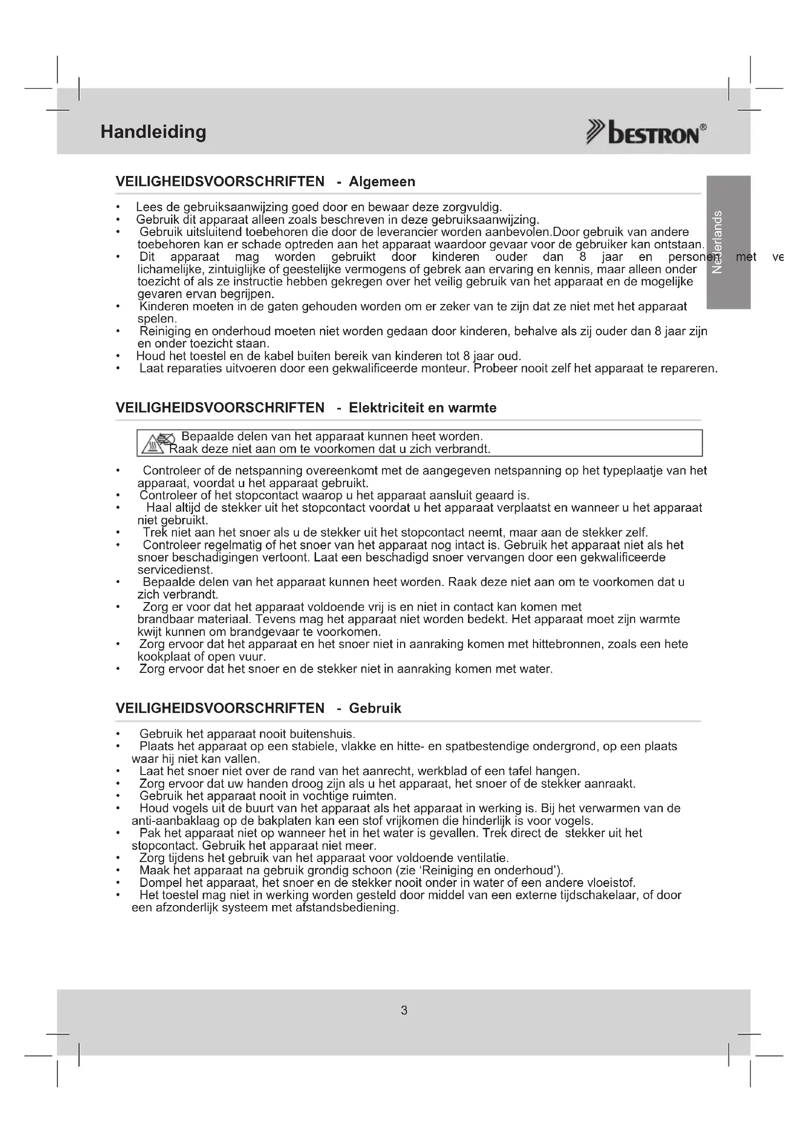 Nederlands VEILIGHEIDSVOORSCHRIFTEN - Algemeen