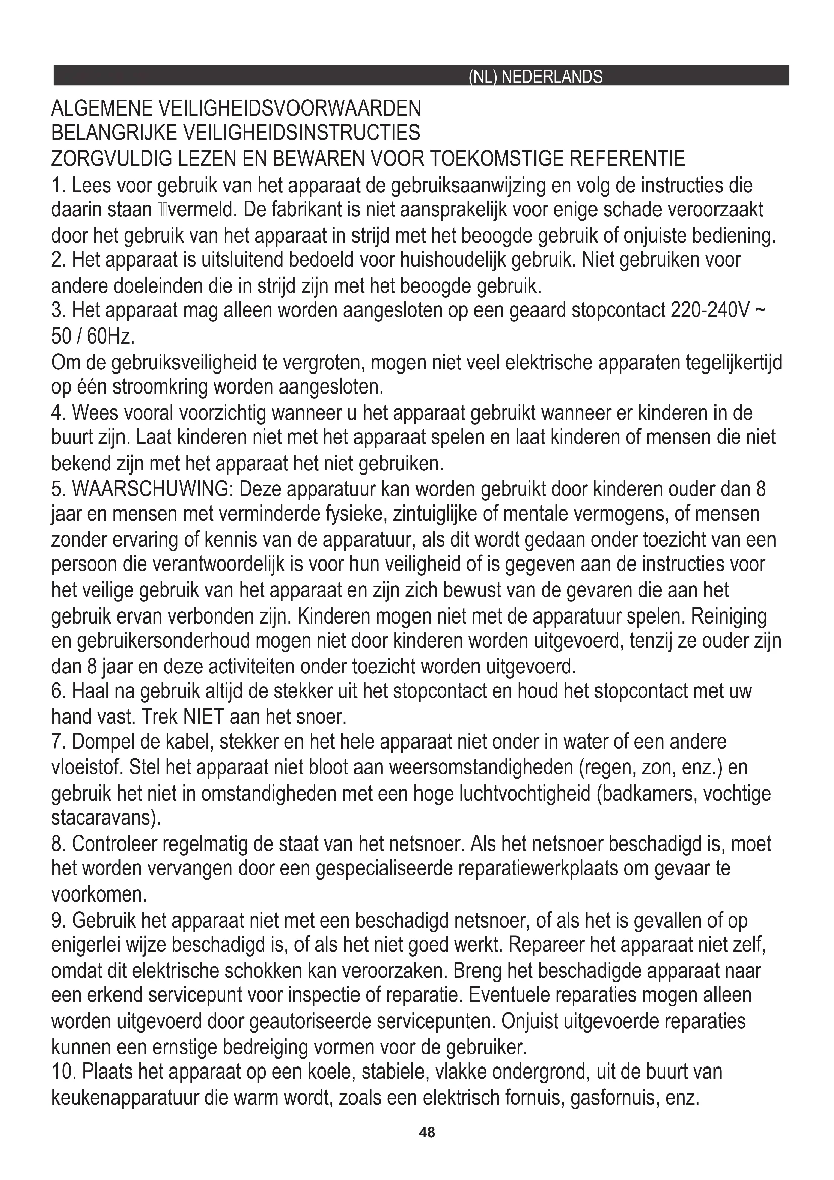 13. Het apparaat mag niet onbeheerd worden achtergelaten wanneer het is aangesloten.