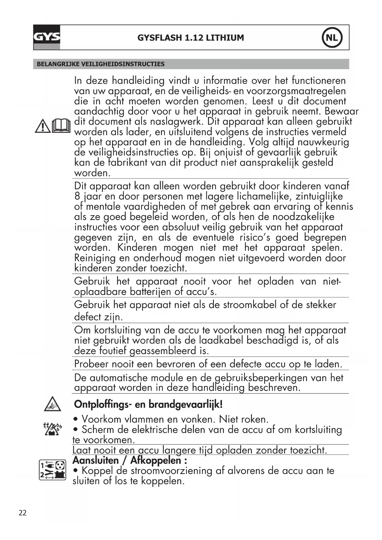 GEBRUIKSAANWIJZING Gysflash Lithium 1.12 GYS
